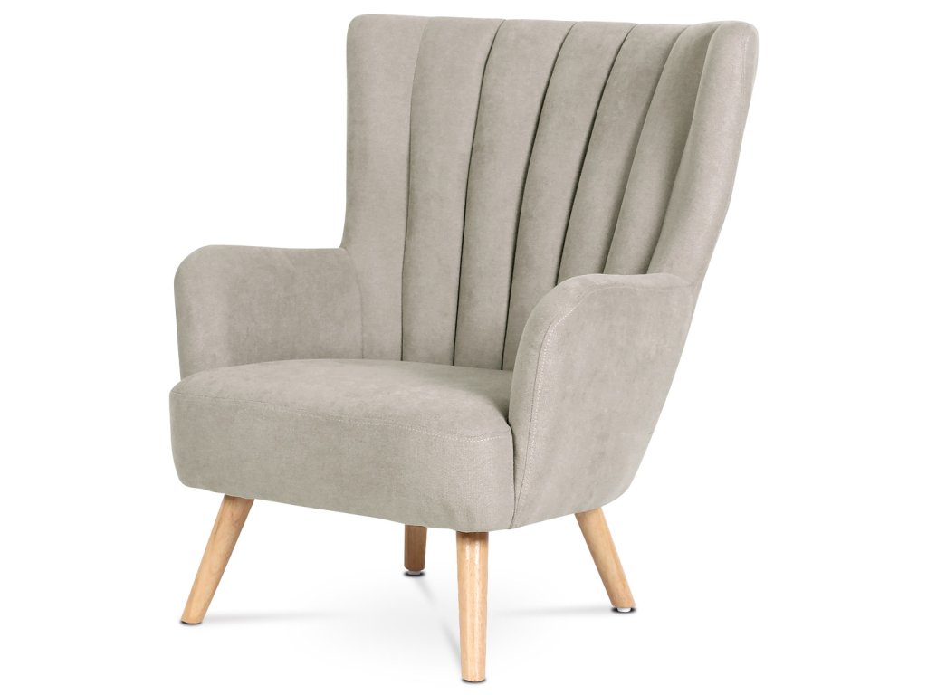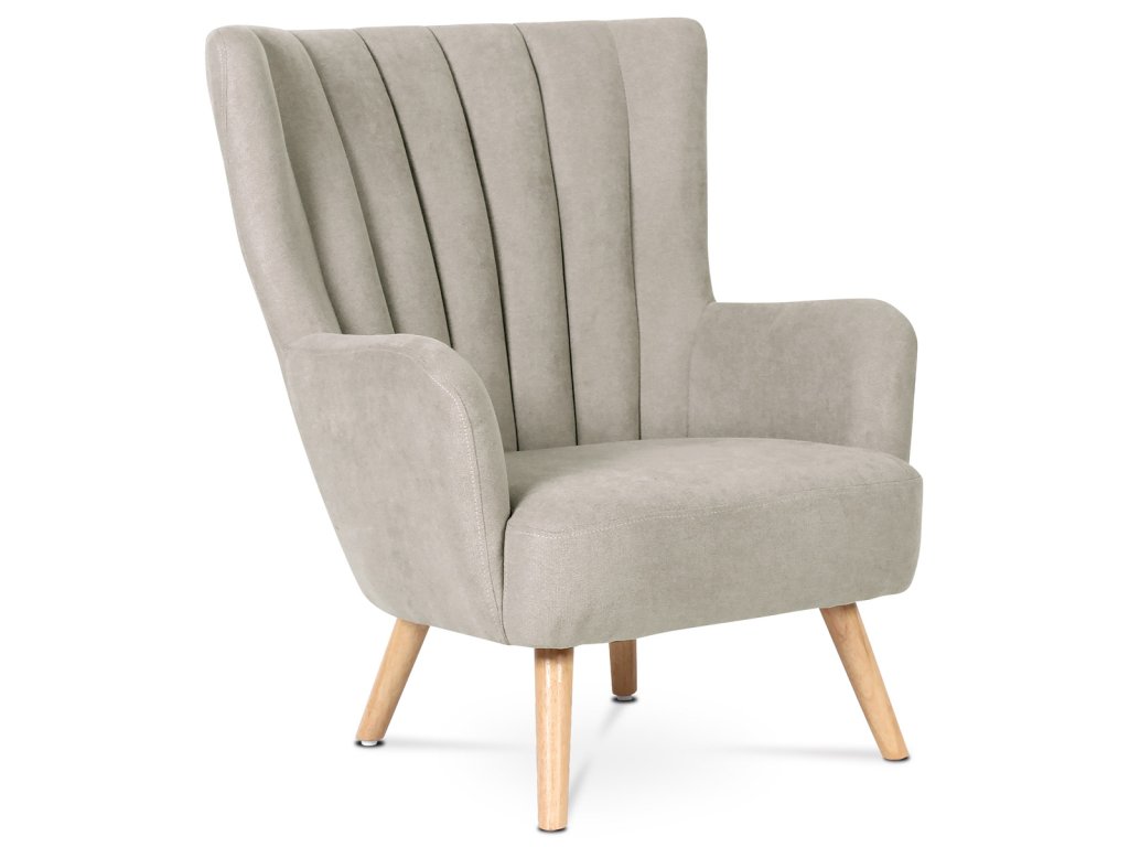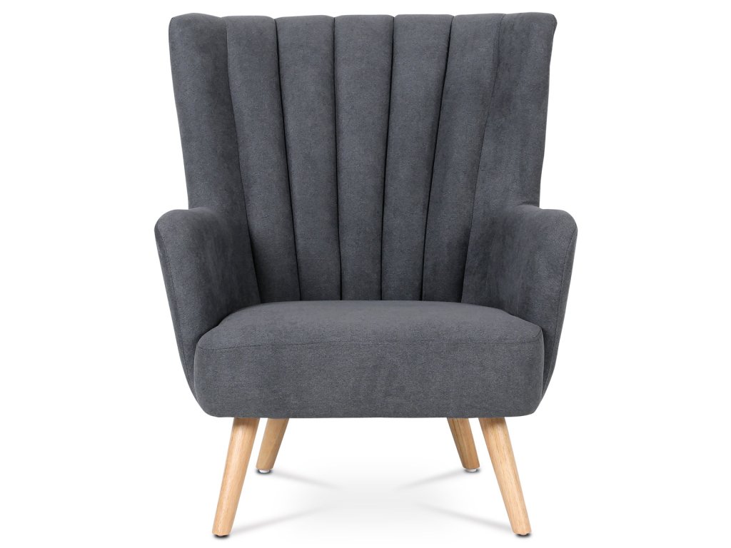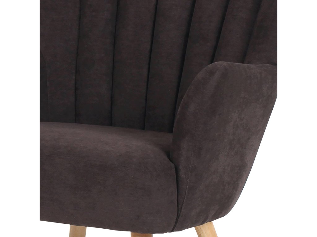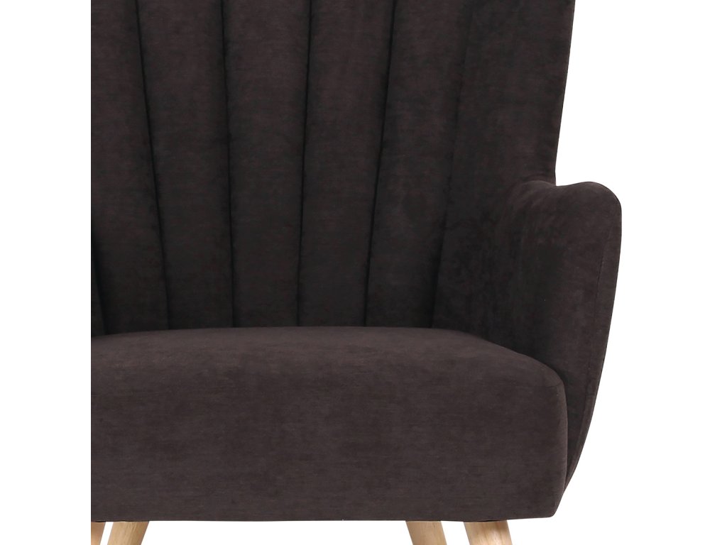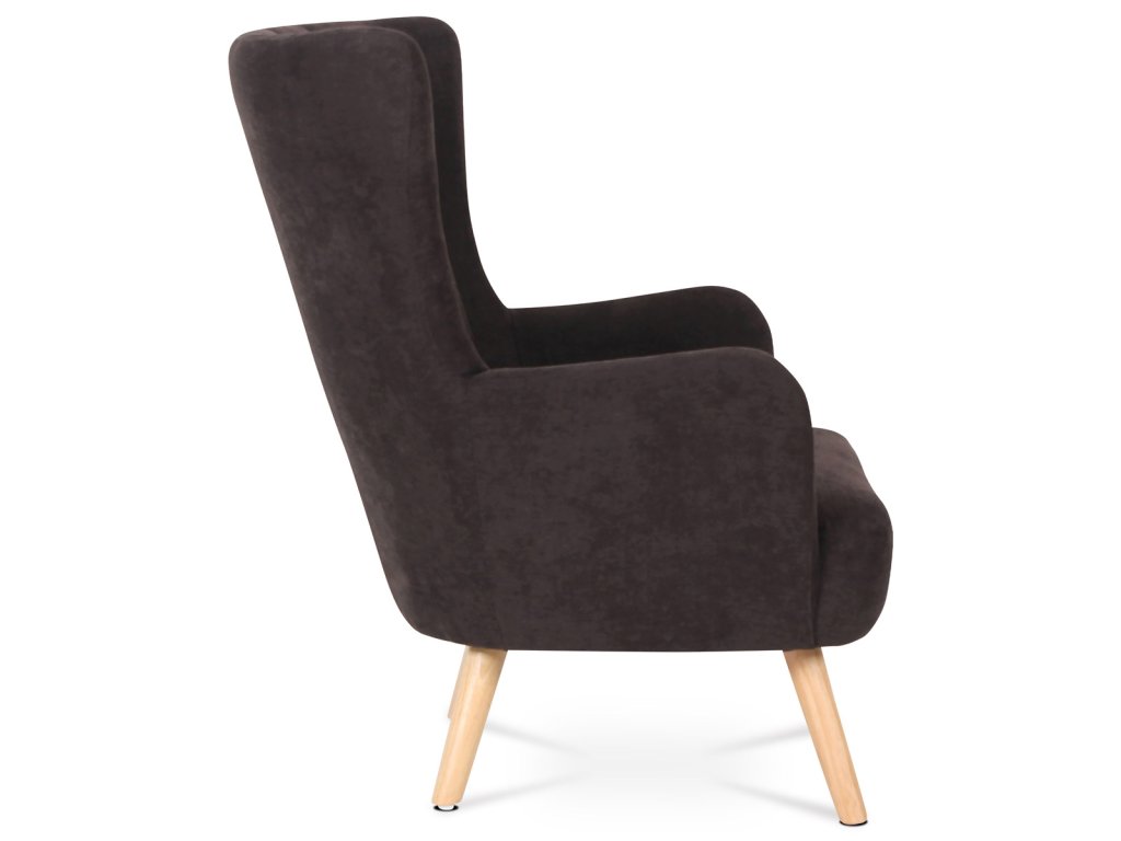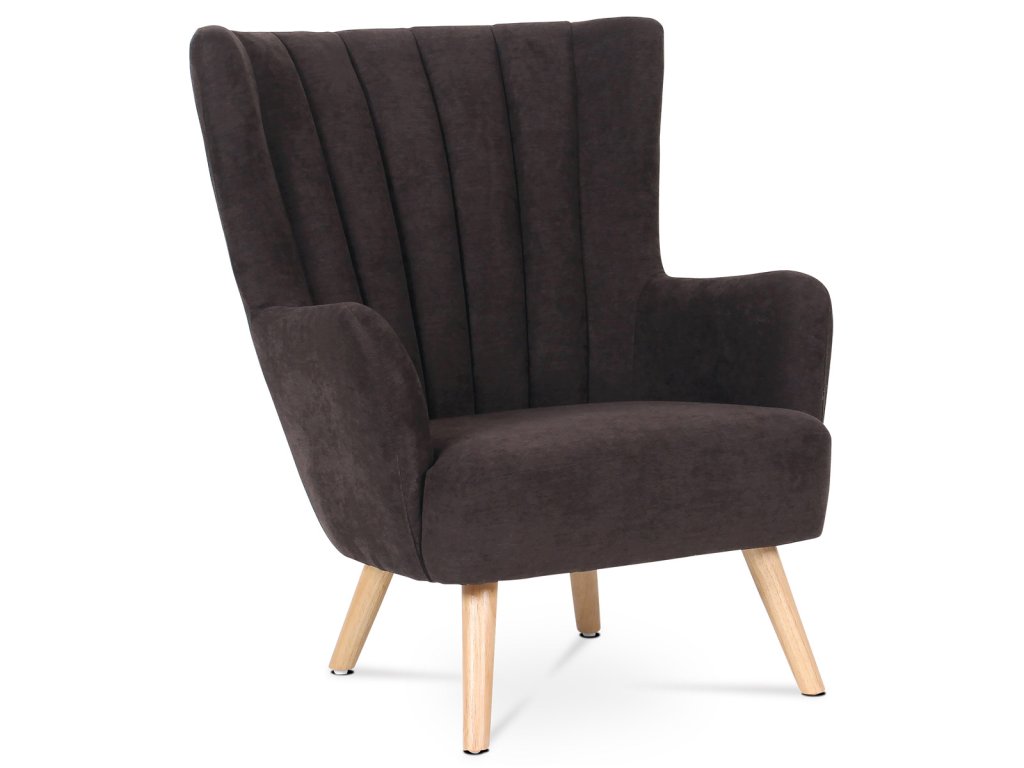 Masivní retro křeslo s dekorativním prošitím opěráku okouzluje svým designem a je poutavým prvkem obytného prostoru zařízeného ve stylu moderním nebo třeba i hygge. Díky vysokému opěráku a pohodlným područkám zajišťuje křeslo více jak příjemné posezení a relaxaci po náročném dni.Potah je z tmavě hnědé látky, kostra křesla z masivu a výplň z kvalitní PU pěny zpevněné v místě sedáku elastickými popruhy. Dřevěné nohy jsou z masivního kaučukovníku, kónické, v přírodním odstínu a lakované. Ze spodu jsou plastové kluzáky, u zadních nohou jsou rektifikovatelné.