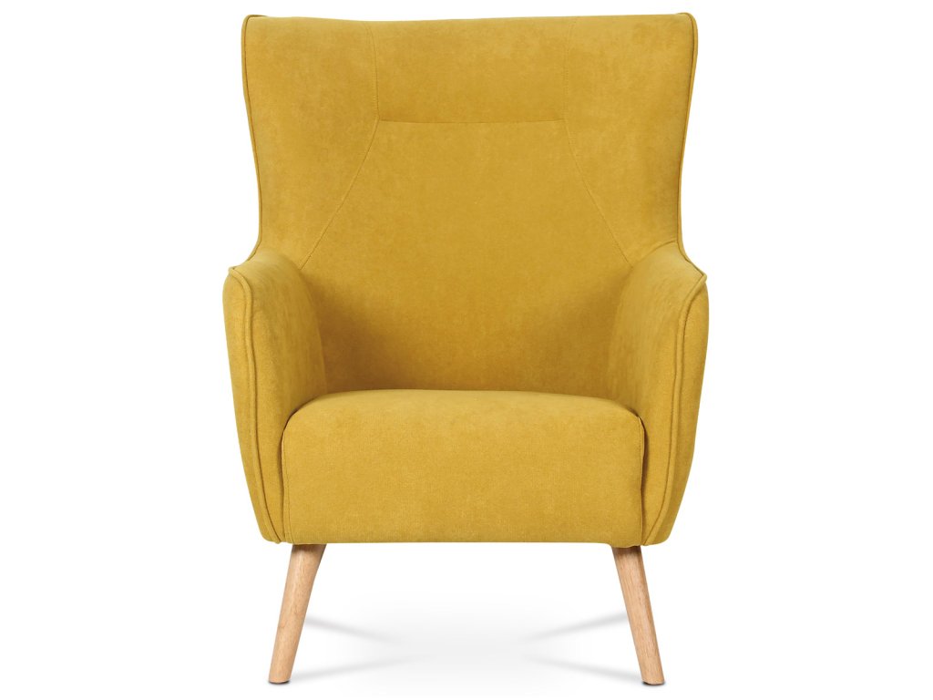 Minimalistické křeslo ve skandinávském stylu - vysoký sedák, úzké a vysoké područky, strohé prošití opěráku. To vše vystihuje jeho severský vzhled, ale také i pohodlí, které zakusíte při posezení. Křeslo v interiéru nepůsobí jako výrazný solitér, ale jako solidní součást obytného prostoru, kde budete rádi trávit chvíle volna a odpočinku.Potah je z trendy hořčicově žluté látky, kostra z masivního dřeva, výplň z kvalitní PU pěny. V místě sedáku jsou pro zvýšení komfortu sezení elastické pruhy. Kónické dřevěné nohy jsou z masivního kaučukovníku, v přírodním odstínu a transparentním laku. Nohy jsou opatřeny plastovými kluzáky, zadní jsou navíc rektifikovatelné.