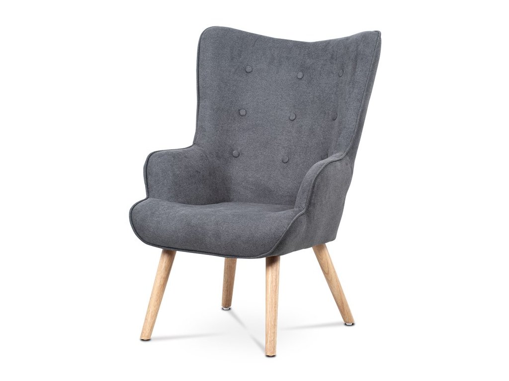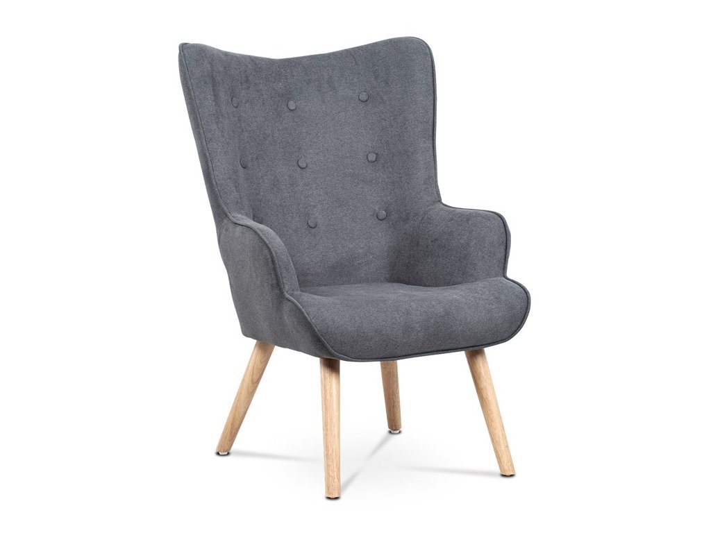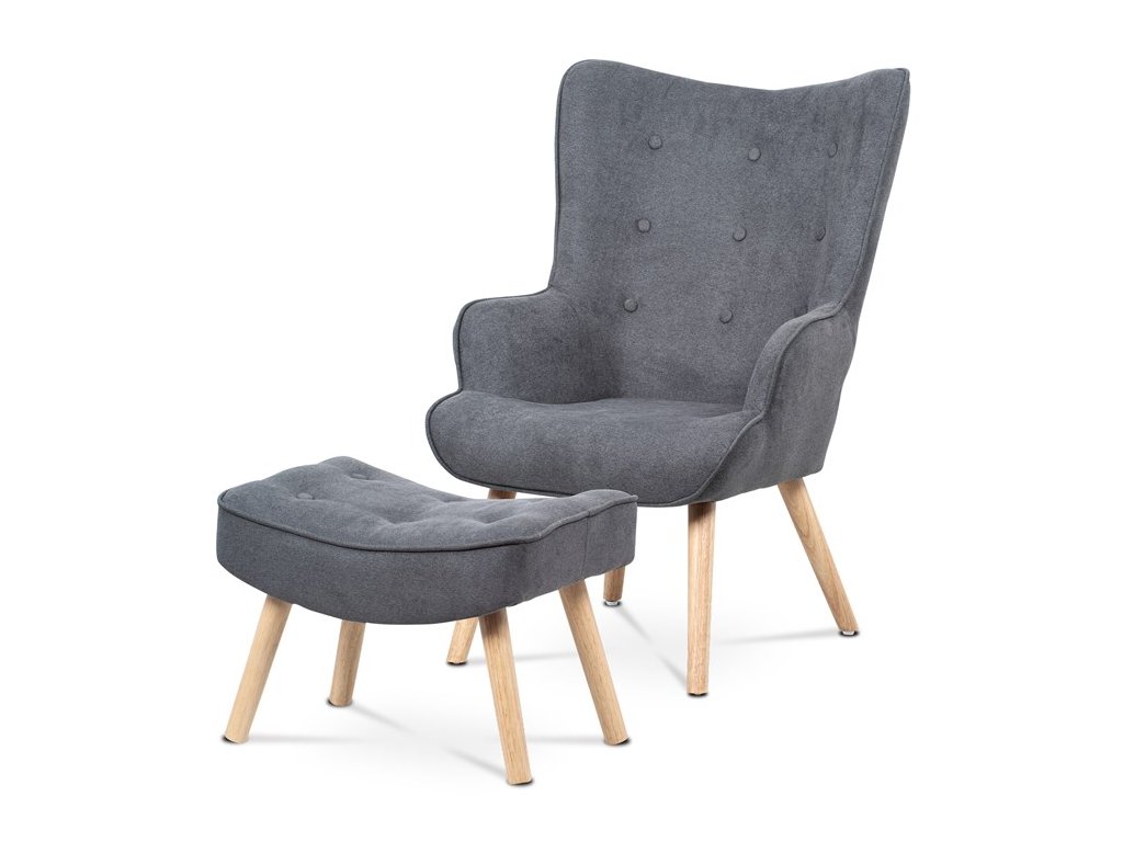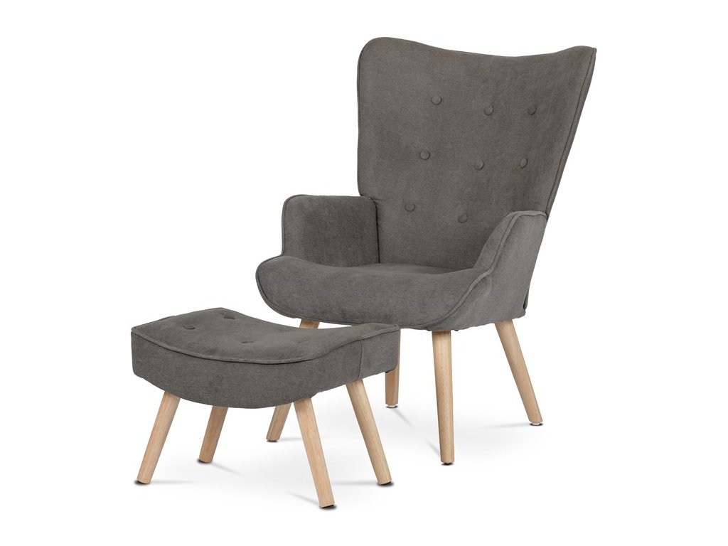 Křeslo minimalistických linií ve skandinávském stylu. Vyniká vysokým prohnutým opěrákem, úzkými a krátkými područkami a dekorativními jemnými čalounickými vtahy zakončenými knoflíky na čelní straně opěráku. To vše vytváří charakteristické severské retro linie tohoto křesla.Nejen design, ale hlavně pohodlí které Vás obklopí při usednutí, bude příjemné zpestření při chvílích odpočinku a relaxace. A k jeho zvýšení výborně poslouží i čtyřnohá a polstrovaná podnožka na vyložení nohou, kterou ale můžete použít i jako příležitostný taburet.
