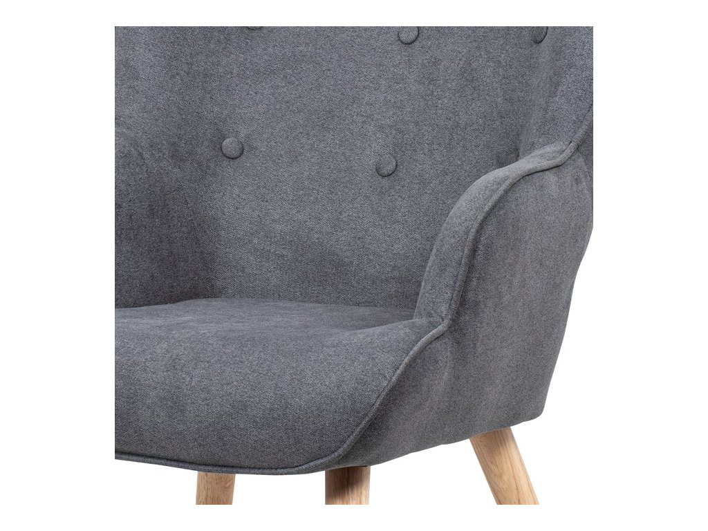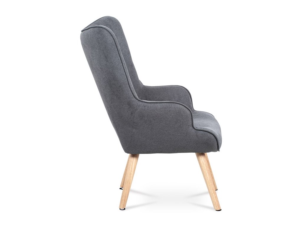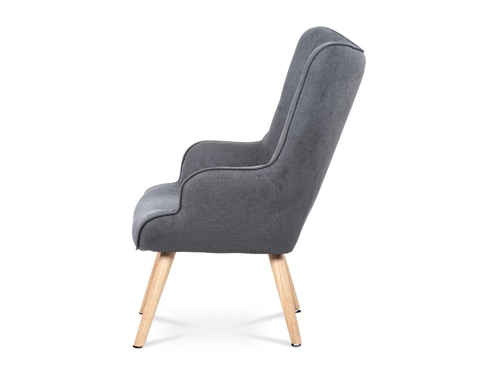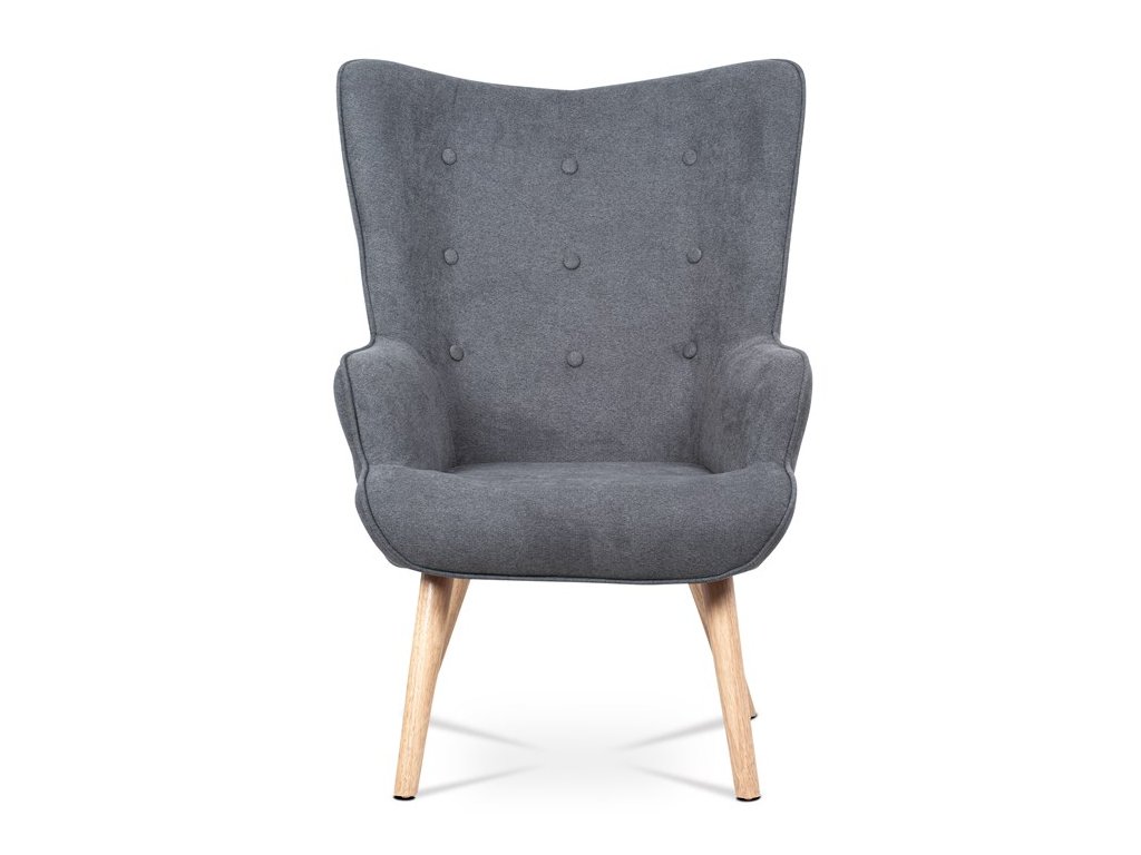 Křeslo minimalistických linií ve skandinávském stylu. Vyniká vysokým prohnutým opěrákem, úzkými a krátkými područkami a dekorativními jemnými čalounickými vtahy zakončenými knoflíky na čelní straně opěráku. To vše vytváří charakteristické severské retro linie tohoto křesla.Nejen design, ale hlavně pohodlí které Vás obklopí při usednutí, bude příjemné zpestření při chvílích odpočinku a relaxace. A k jeho zvýšení výborně poslouží i čtyřnohá a polstrovaná podnožka na vyložení nohou, kterou ale můžete použít i jako příležitostný taburet.