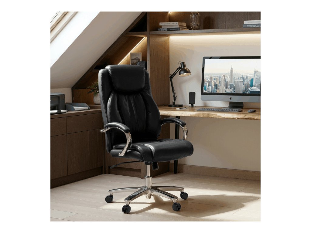 Kancelářské křeslo značky Autronic v elegantní černé barvě přináší komfort a styl do vaší kanceláře nebo domácí pracovny. Čalounění z hladké ekokůže je nejen estetické, ale také snadno udržovatelné. Křeslo je vybaveno houpacím mechanismem a nastavitelnou výškou pro maximální pohodlí při práci. Stabilní kovový kříž s kolečky na tvrdé povrchy zaručuje dlouhou životnost a snadnou mobilitu. Čalouněné pevné područky poskytují extra oporu během sezení. Perfektní kombinace funkčnosti a moderního designu.Doplňkové parametry