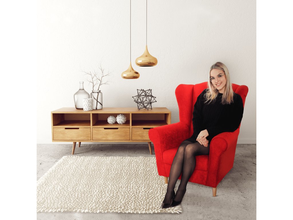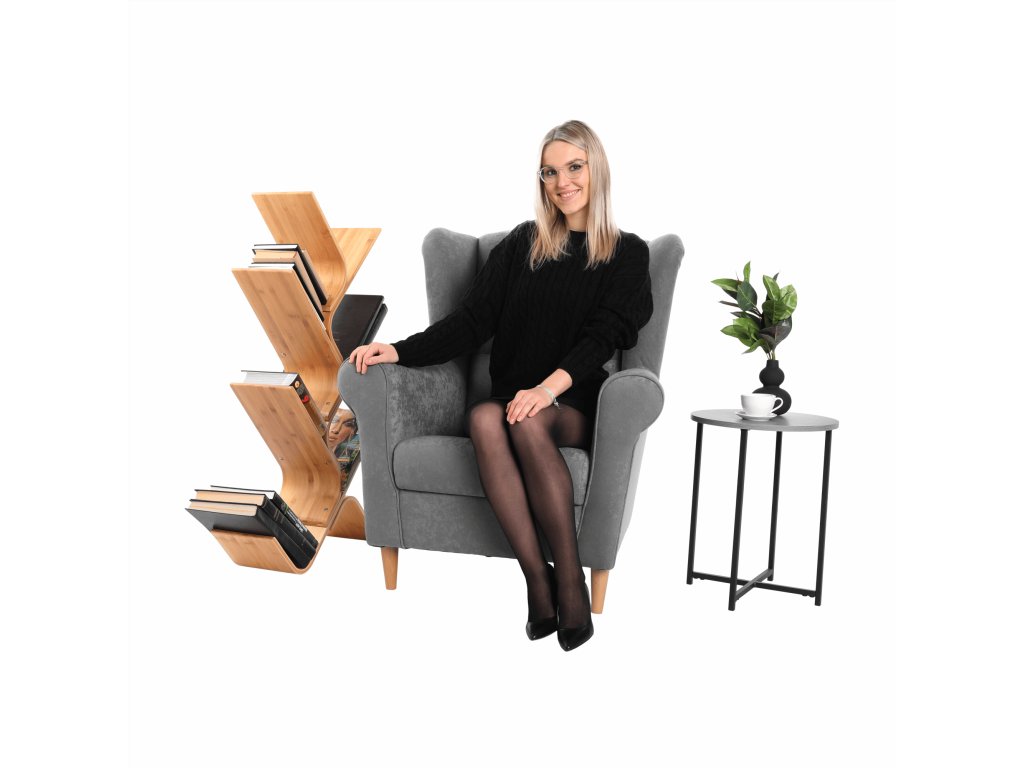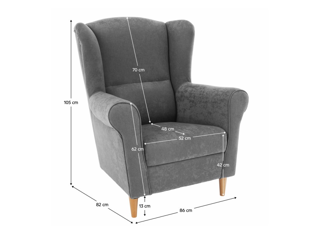 Křeslo-ušák Charlot v šedém barevném provedení látky.Oděruodolnost textilie podle testu Martindale: 85 000 oděrek