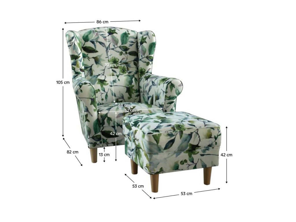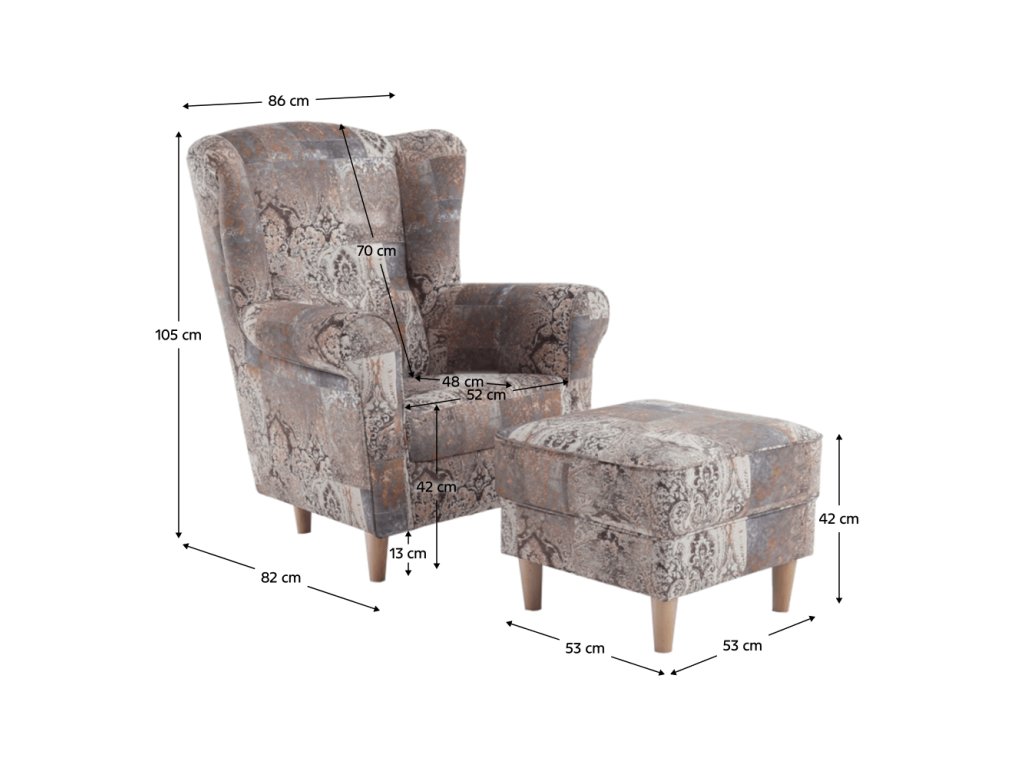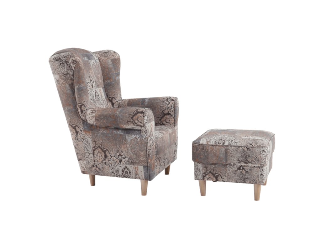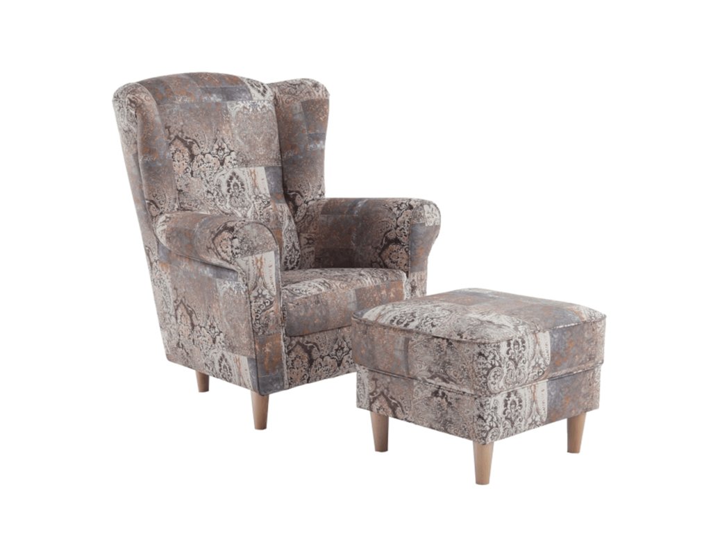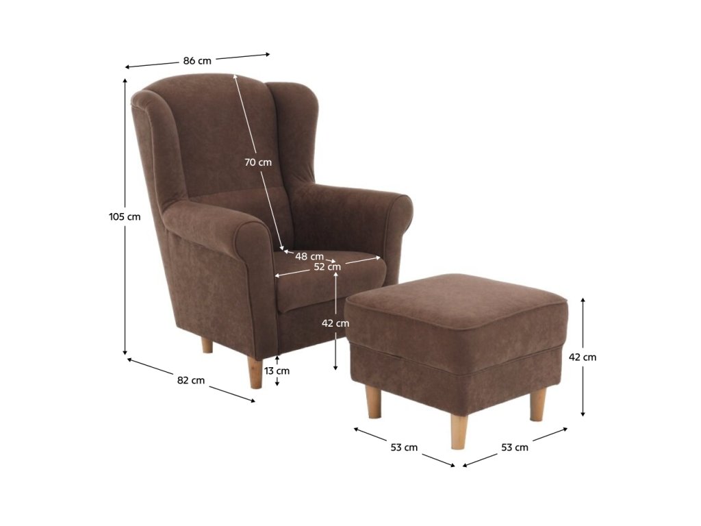 Pohodlné křeslo - ušák s taburetemProvedení: alova hnědá - nožičky dřevěné v barvě buk