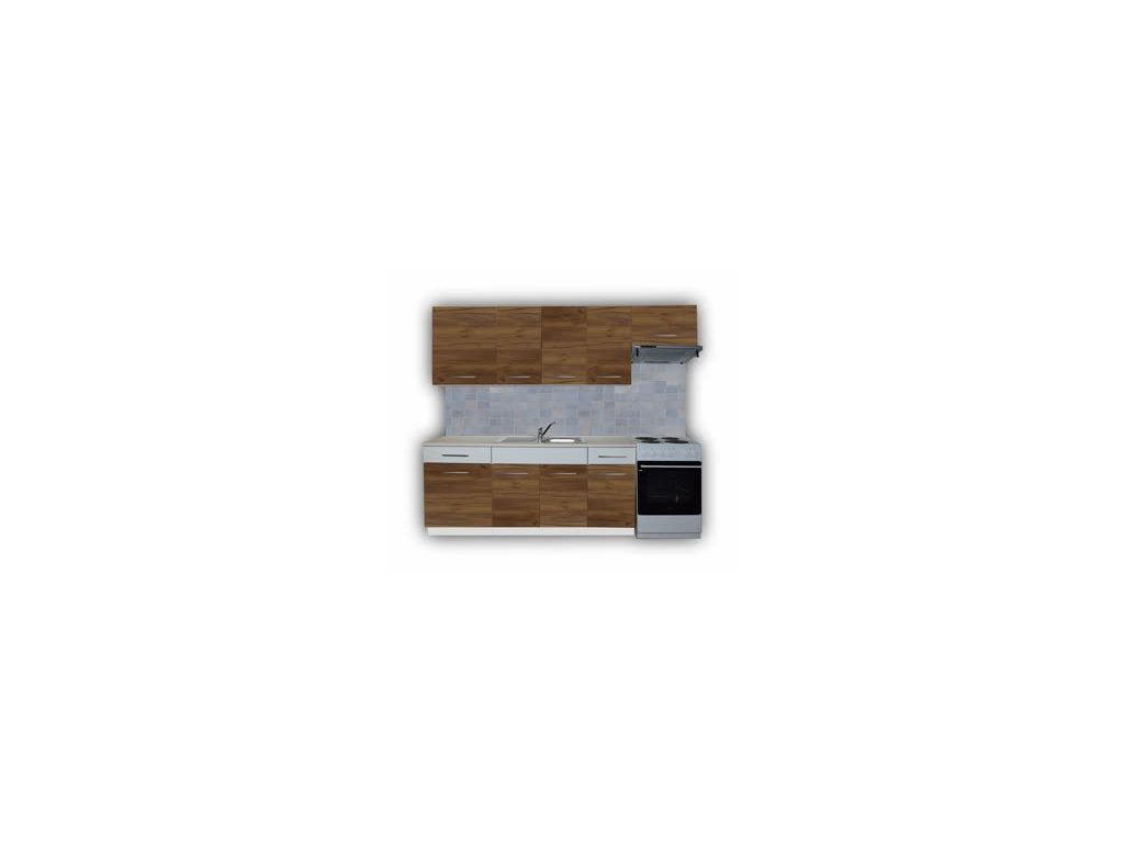 Horní část tvoří skříňky 40 cm, 60 cm a 80 cm a výřezová skříňka pro digestoř.