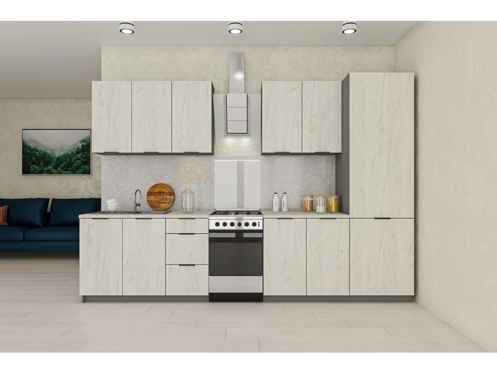 Dřez, pracovní deska, sokl nejsou v ceně. Spotřebiče nejsou součástí kuchyňské linky. Dodáváme v demontovaném stavu.