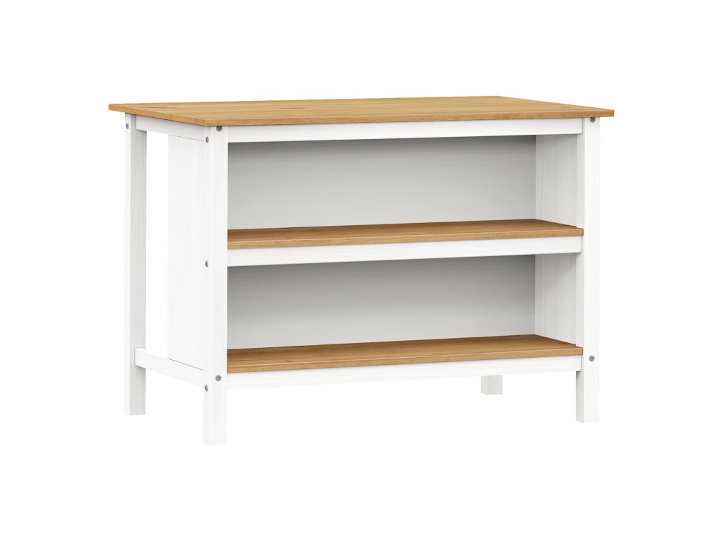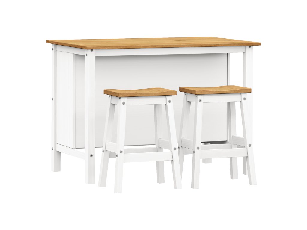 Kuchyňský ostrůvek CORONA 2 je vyroben z masivní borovice a voskován v kombinaci bílého a medového odstínu, což dodává vaší kuchyni rustikální šarm. Ostrůvek o rozměrech 126 × 77 × 91 cm poskytuje dostatek pracovní plochy a úložného prostoru díky jedné vestavěné polici. Součástí setu jsou dvě barové stoličky s rozměry 44 × 30 × 63 cm, které dokonale ladí s designem ostrůvku. Tento set je součástí kolekce Corona 2 a představuje ideální řešení pro ty, kteří hledají funkční a stylový doplněk do své kuchyně.Doplňkové parametry