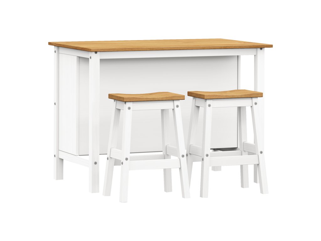 Kuchyňský ostrůvek CORONA, materiál masiv borovice voskovaná v bílém odstínu, horní deska a police voskovaná v medovém odstínu, 1 police.Doplňkové parametry