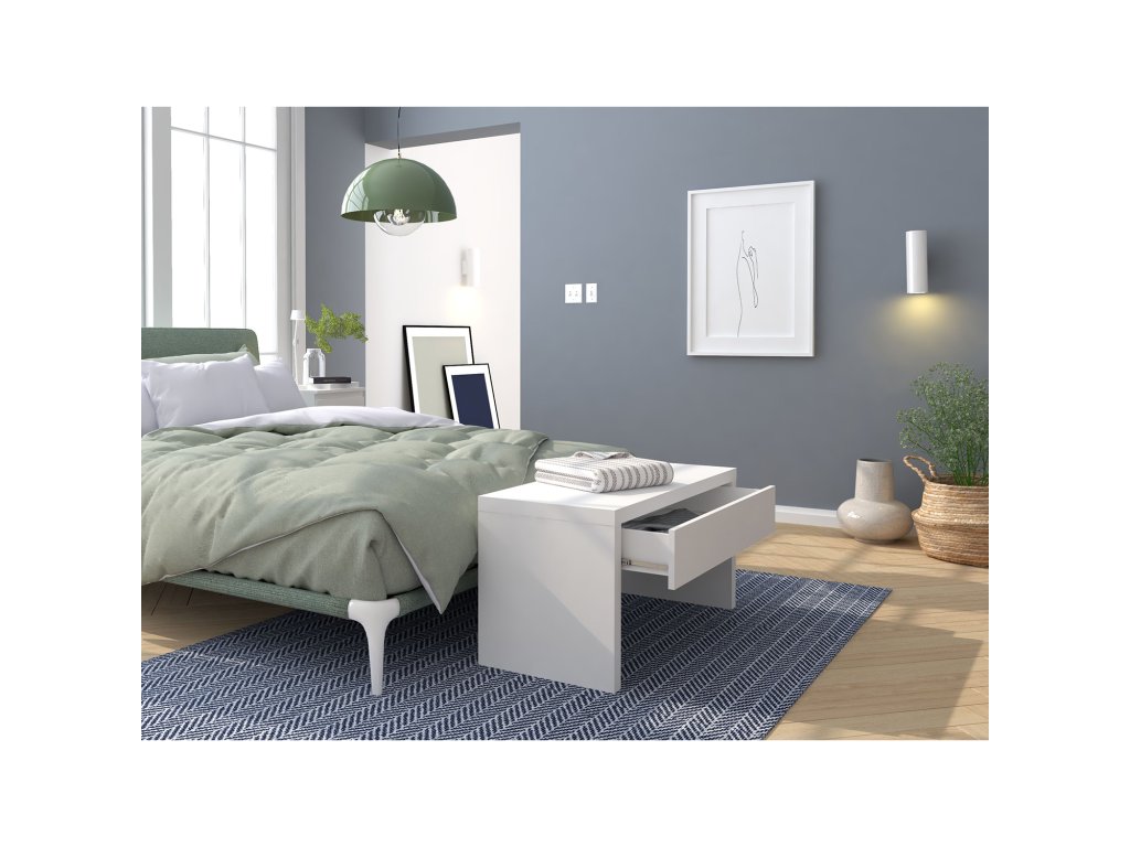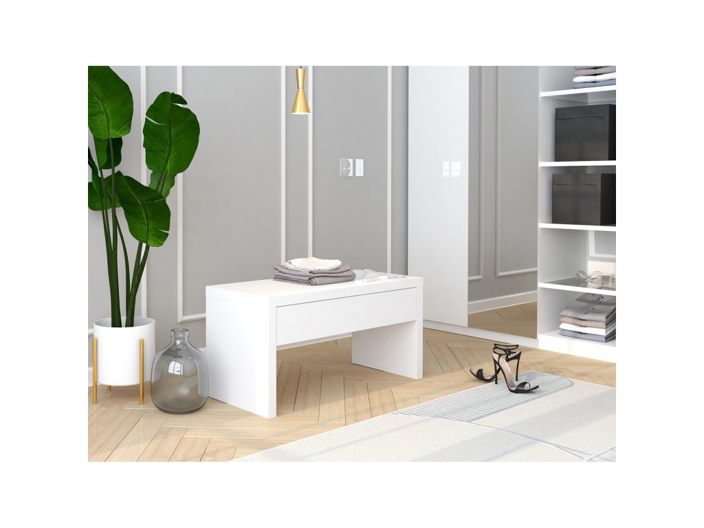 barevné provedení bílá, jedna zásuvka s kovovými pojezdy, vhodný doplněk k věšáku GENF, maximální nosnosti: lavice 20 kg, zásuvka 5 kgDoplňkové parametry
