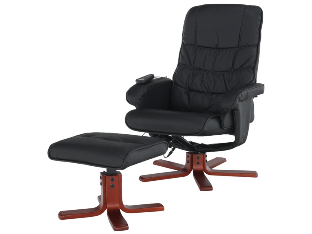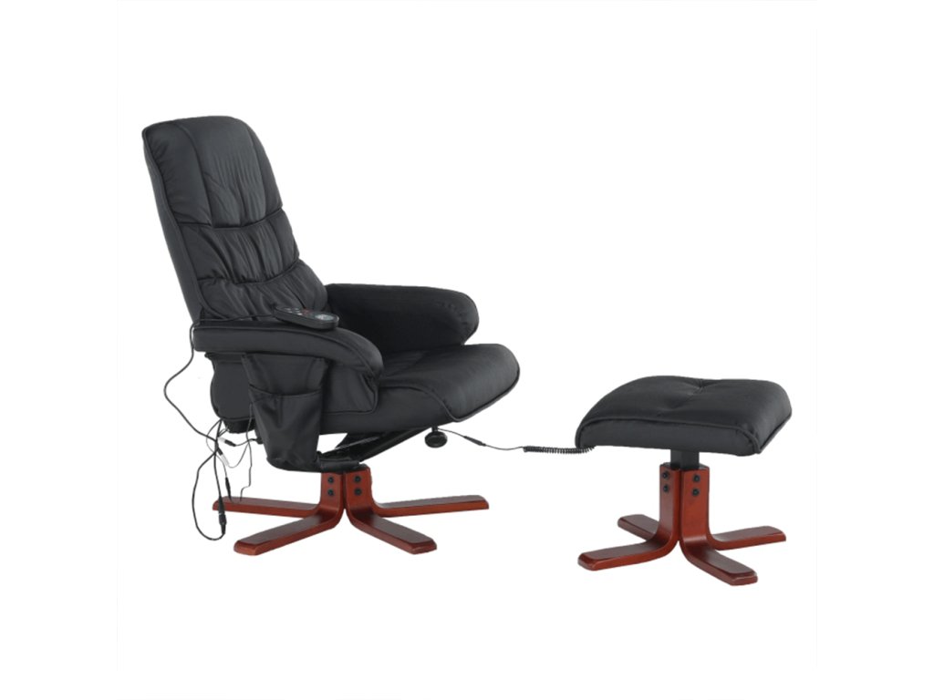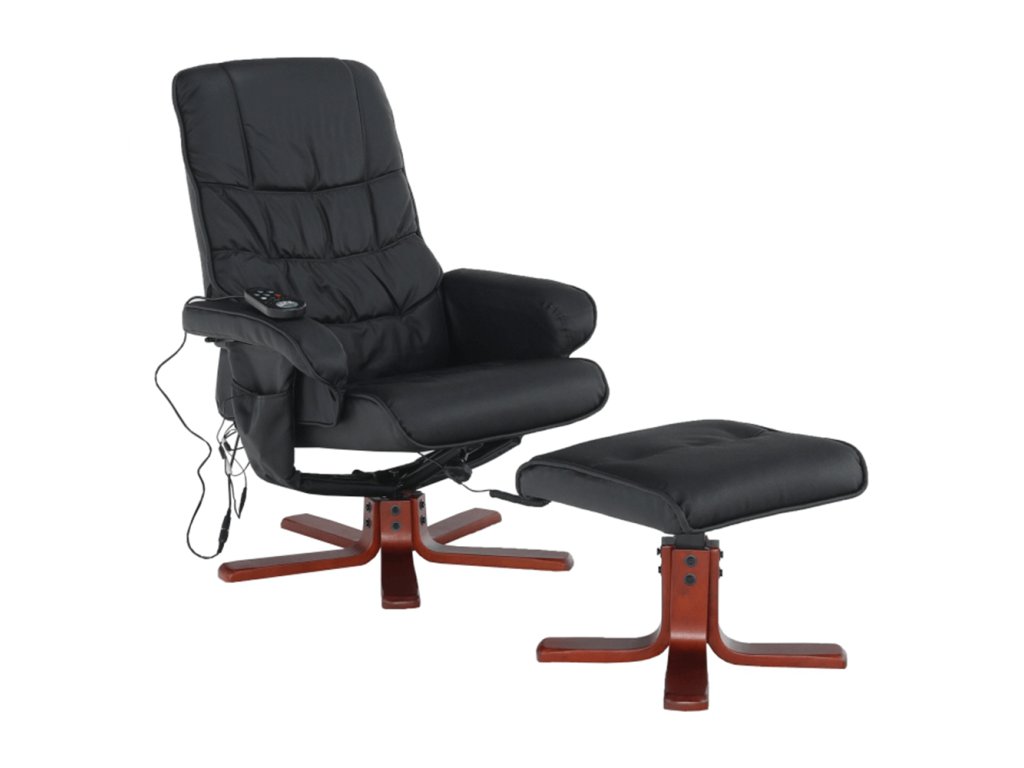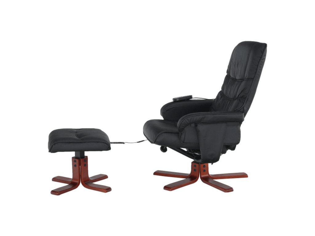 Polohovatelné elektrické masážní křeslo s podnoží a 8 masážními body,Materiál: split kůže / ekokůže černá,