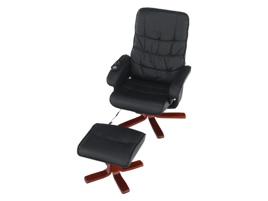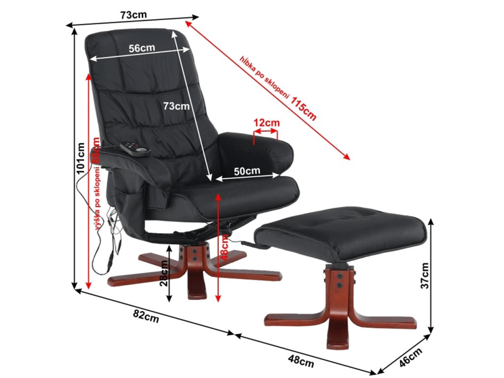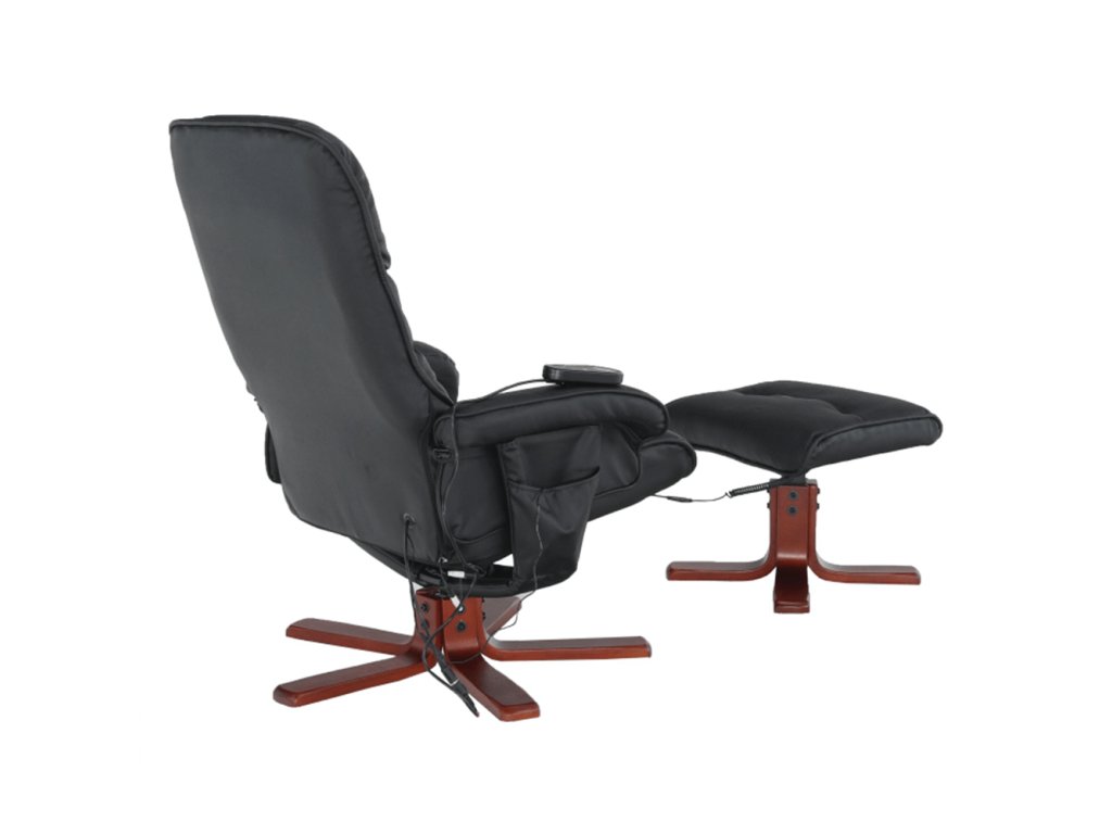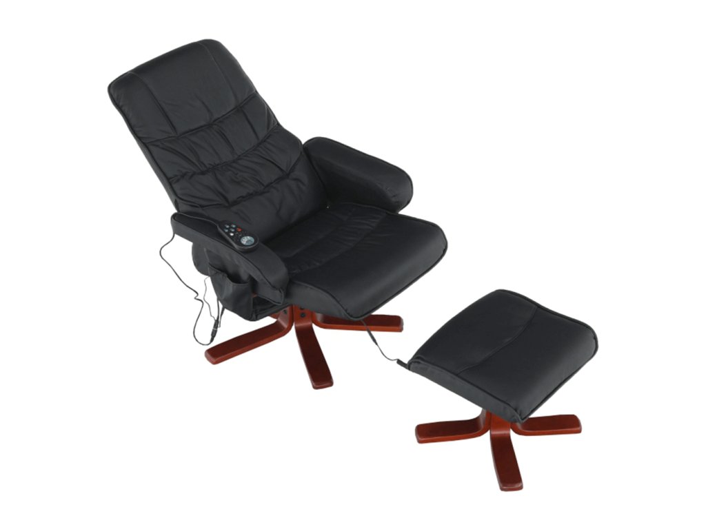 Polohovatelné elektrické masážní křeslo s podnoží a 8 masážními body,Materiál: split kůže / ekokůže černá,