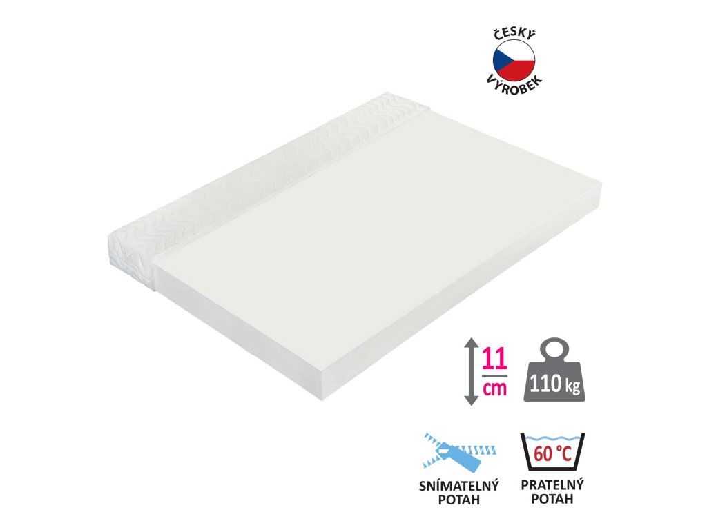 matrace s prošívaným bavlněným potahem, jádro z Flexifoam pěny vhodná pro všechny typy roštů, potah snímatelný a pratelný do 60 °C, doporučená nosnost do 110 kgDoplňkové parametry