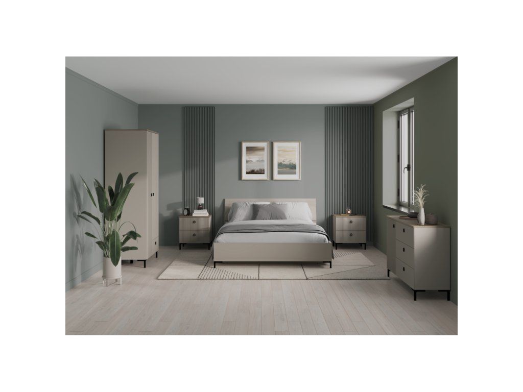 Noční stolek DOMCA 2S v dekoru Taupe/dub silverjack nabízí kombinaci moderního vzhledu a praktického úložného prostoru. Skvělá volba pro každý interiér.✔ Rozměry: 53,2×40,7×58,6 cm, výška nožiček 12 cm
