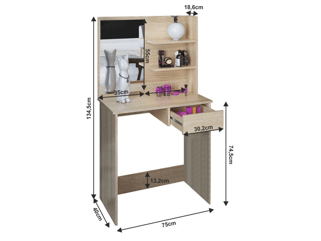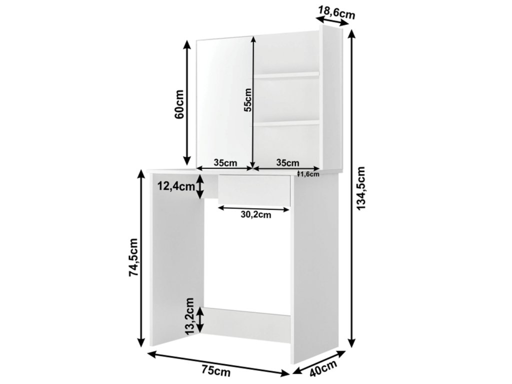 Bílá toaletka BELEZA z laminované DTD nabízí praktické zázemí pro líčení i úpravu vzhledu. Stabilní konstrukce a moderní design skvěle doplní každý interiér.✔ Rozměry 75×40×134,5 cm, tloušťka 16 mm