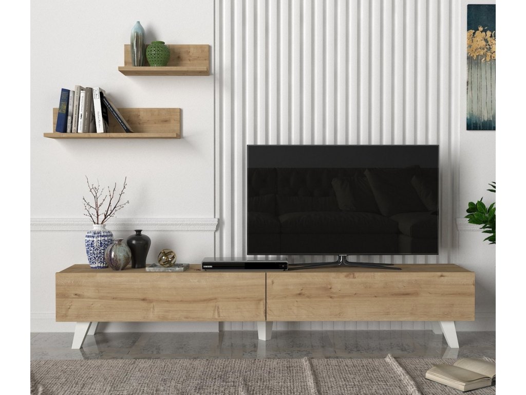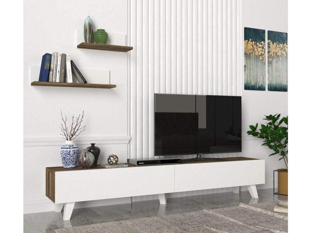 Televizní stolek BROKEN bílá/ořech spojuje praktičnost a elegantní design:✔ Kvalitní lamino tl. 18 mm, hrany z PVC pásky
