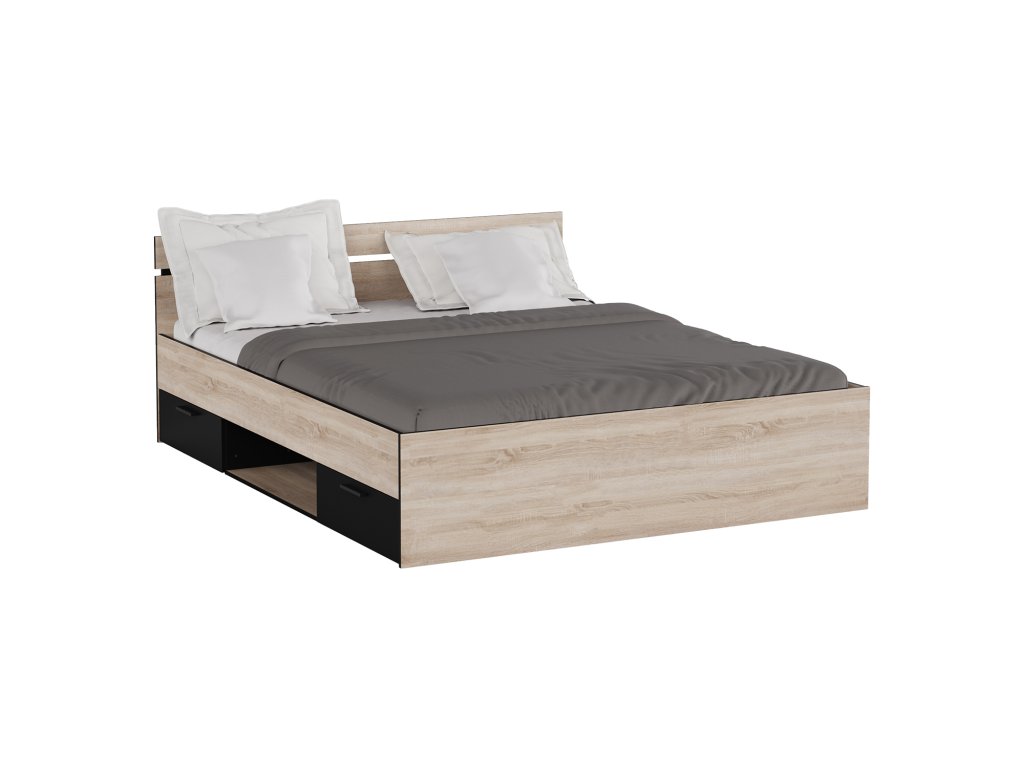 Moderní dvoulůžková postel v kombinaci dub Sonoma / černá spojuje elegantní design a praktičnost. Nabízí dostatek úložného prostoru díky dvěma zásuvkám s kovovými pojezdy (56 × 11 × 33 cm) a prostorné nice (80 × 20 × 36 cm), což umožňuje snadné uskladnění ložního prádla a dalších věcí.Postel je určena pro matraci o velikosti 160 × 200 cm nebo dvě matrace 80 × 200 cm. Rošt a matrace nejsou součástí balení – k posteli je nutné použít samonosný rošt v rámu 160 × 200 cm (doporučené typy: 7155, 7866 nebo 429596).