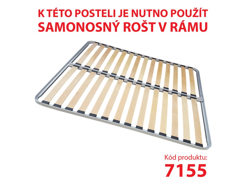 k posteli je nutno použít samonosný rošt v rámu 160 × 200 cm (7155 nebo 7866)
