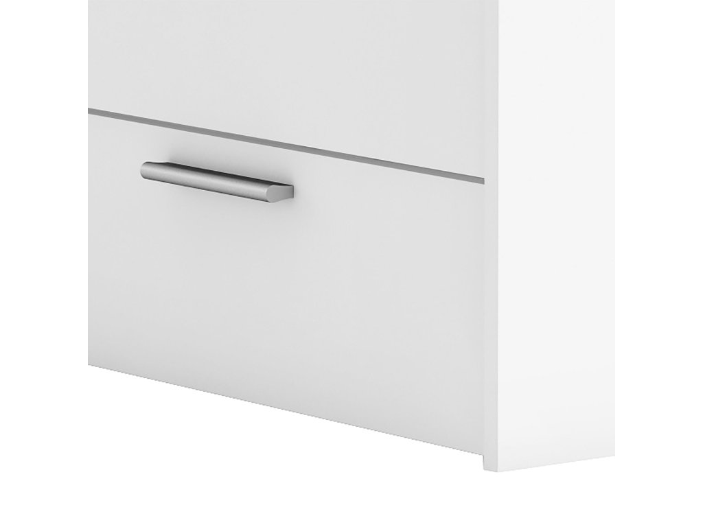 Barevné provedení perleťově bílá2 úložné zásuvky s kovovými pojezdy a odkládací nika jsou v ceně