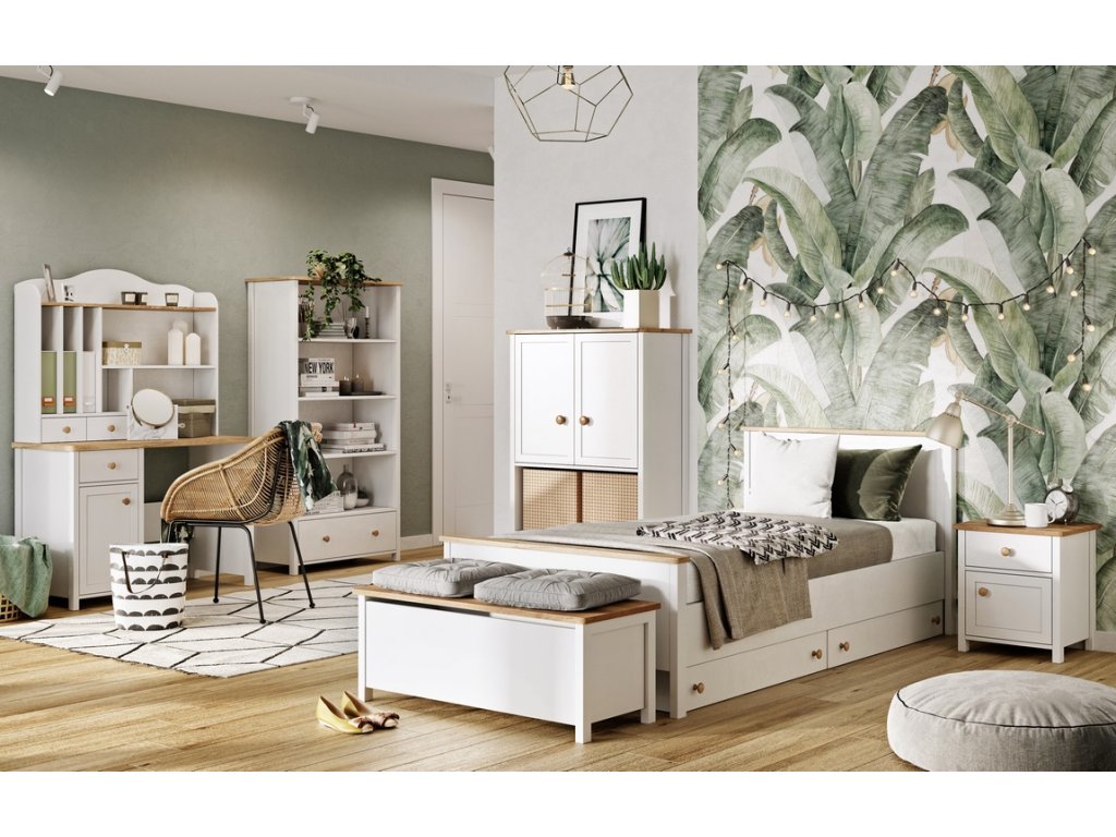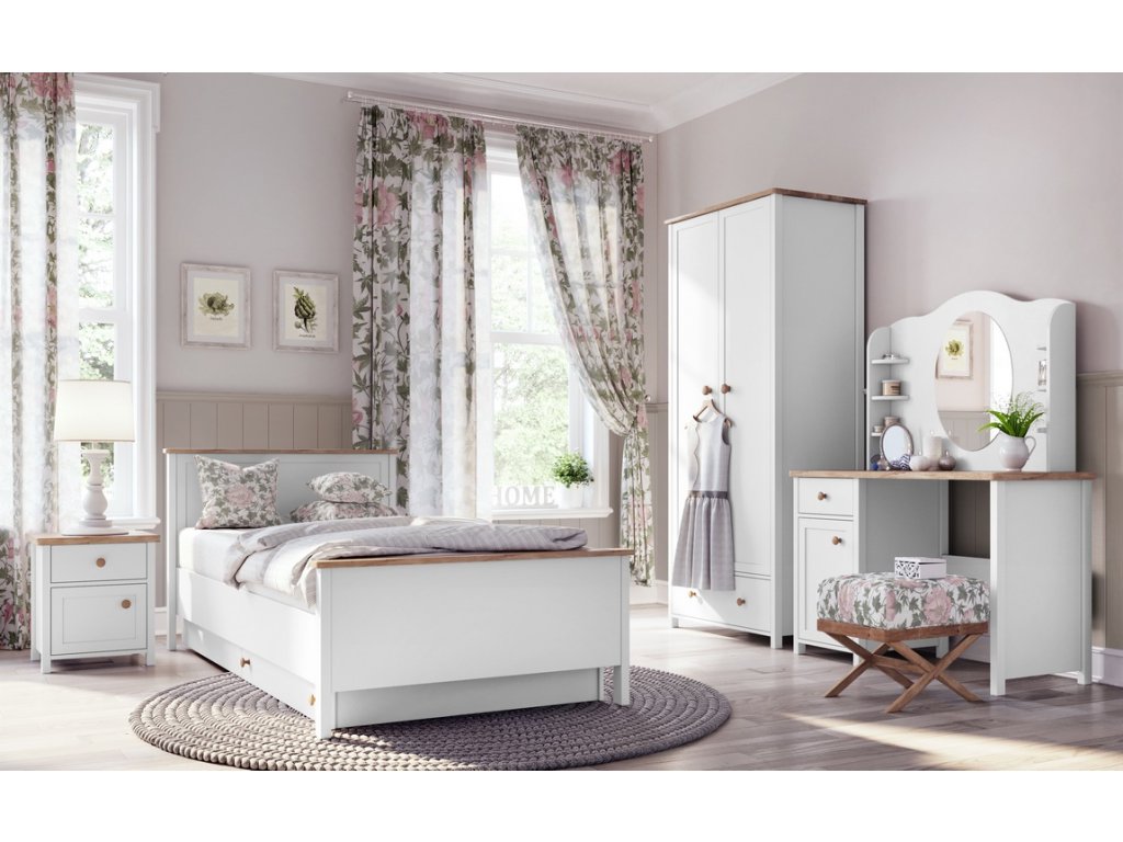 Nádstavec se zrcadlem. Tento elegantní nábytek dodá romantickou atmosféru pokojíčku malé princezny i větší slečny. Nástavec je vyroben z desky LTD v kombinaci s MDF v barvě bílé. Nástavec je možné kombinovat s psacím stolem 03 nebo komodou 05, upevňuje se úchytkami v zadní části stolu (komody). Dodáváme v demontovaném stavu.Doplňkové parametry