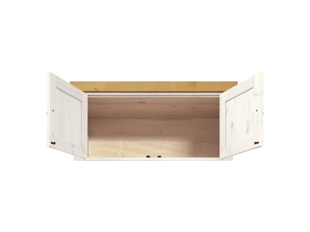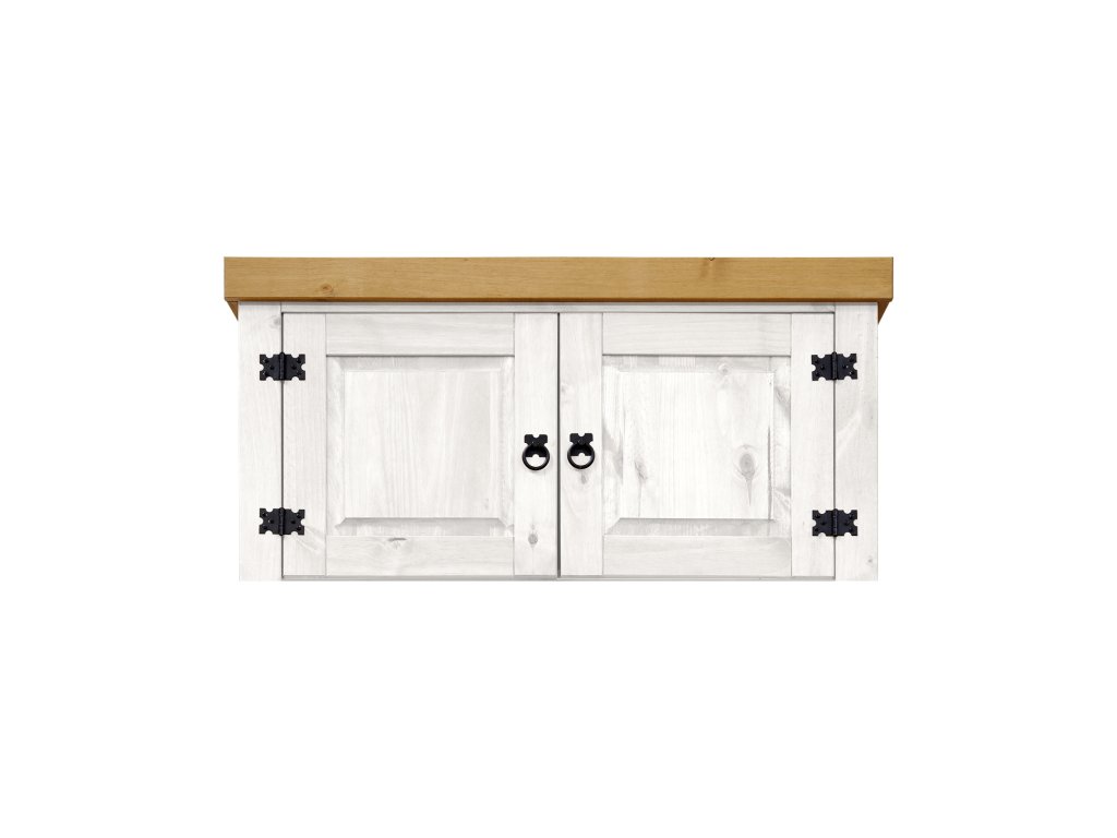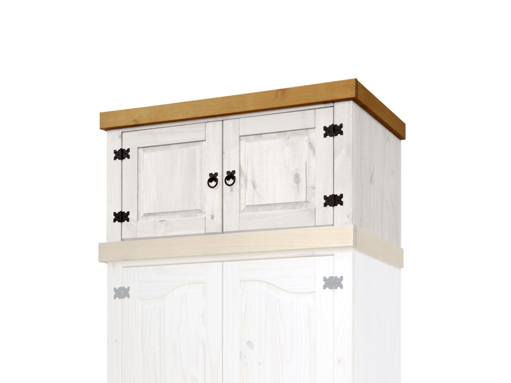 Nástavec na skříň, materiál masiv borovice voskovaná v bílém odstínu, horní lem masiv borovice voskovaná v medovém odstínu, nástavec pro skříň 162820B, součást sestavy Corona bílá.Doplňkové parametry