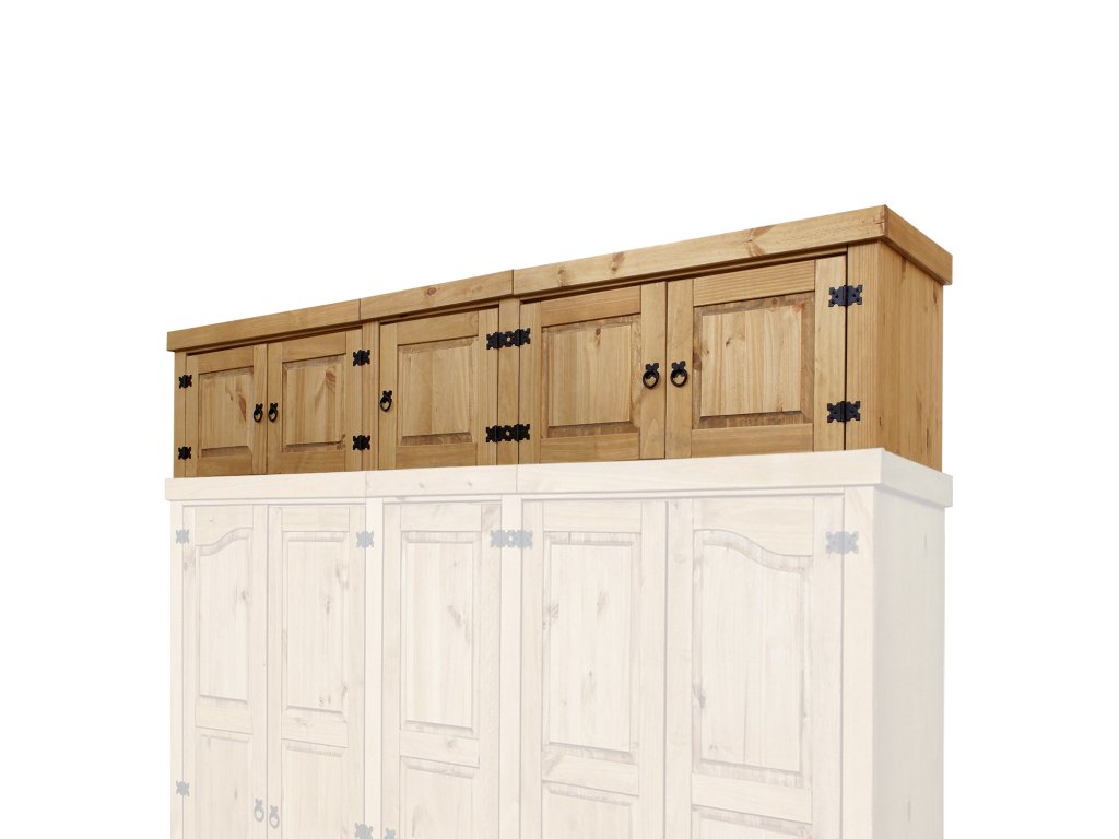 Nástavec na skříň, materiál masiv borovice voskovaná v medovém odstínu, nástavec pro skříň 162819, součást sestavy Corona.Doplňkové parametry