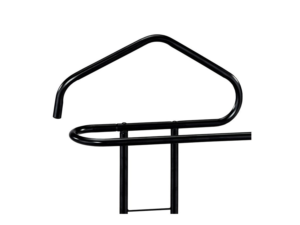 Praktický němý sluha v minimalistickém designu. Konstrukce je z kovových trubek pr. 19 mm. Povrchová úprava je v černém matném práškovém laku. Výška 108 cm Vám umožní zavěšení oblečení i doplňků bez pomačkání. Nosnost stojanu jsou 4 kg, hmotnost necelé 2 kg. I proto je jednoduše přenositelný a lze ho umístit podle momentální potřeby i nálady. Stylem a jednoduchostí se hodí do jakéhokoli interiéru. Využití je nepřeberné, záleží jen na Vás.Doplňkové parametry
