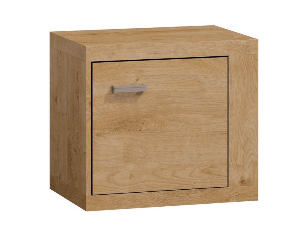 Noční stolek s 1 policí uvnitř. Jedná se o stylovou kolekci nábytku moderního stylu, který je vhodný do obývacího pokoje a ložnice. Barevné provedení dub ribbeck. Nábytek je vyroben z kvalitního lamina 16 mm, některé desky jsou zesíleny na 48 mm, vše ohraničené ABS páskou. Dvířka mají systém tichého dovírání. Dodáváme v demontovaném stavu.Doplňkové parametry