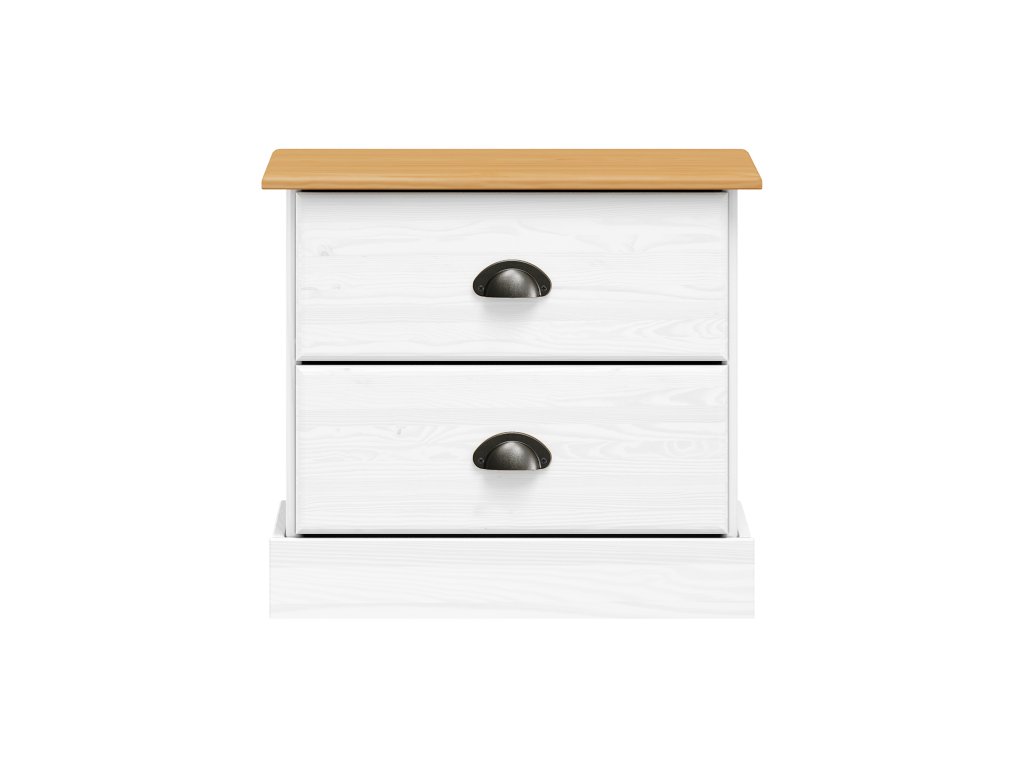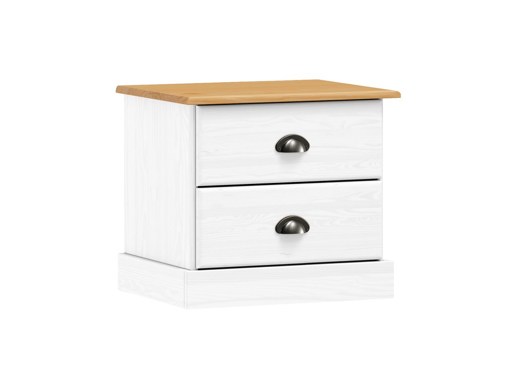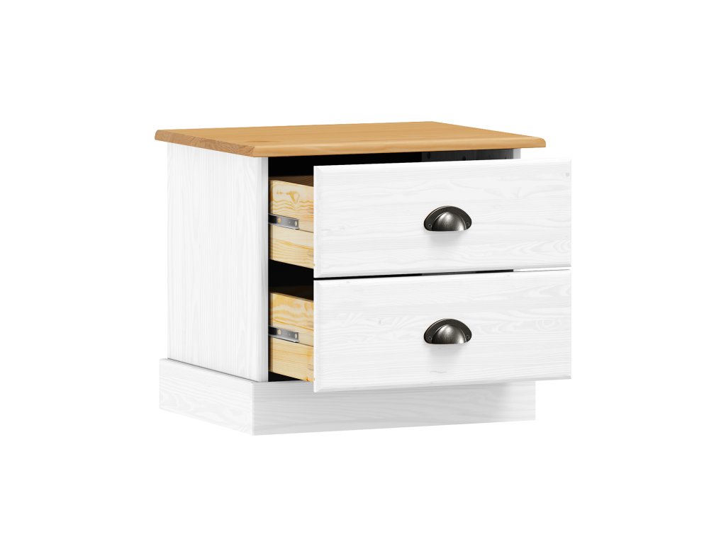 Noční stolek STANFORD 293341B je vyroben z masivní borovice a opatřen bílým lakem.- 2 zásuvky s kovovými úchytkami a pojezdy