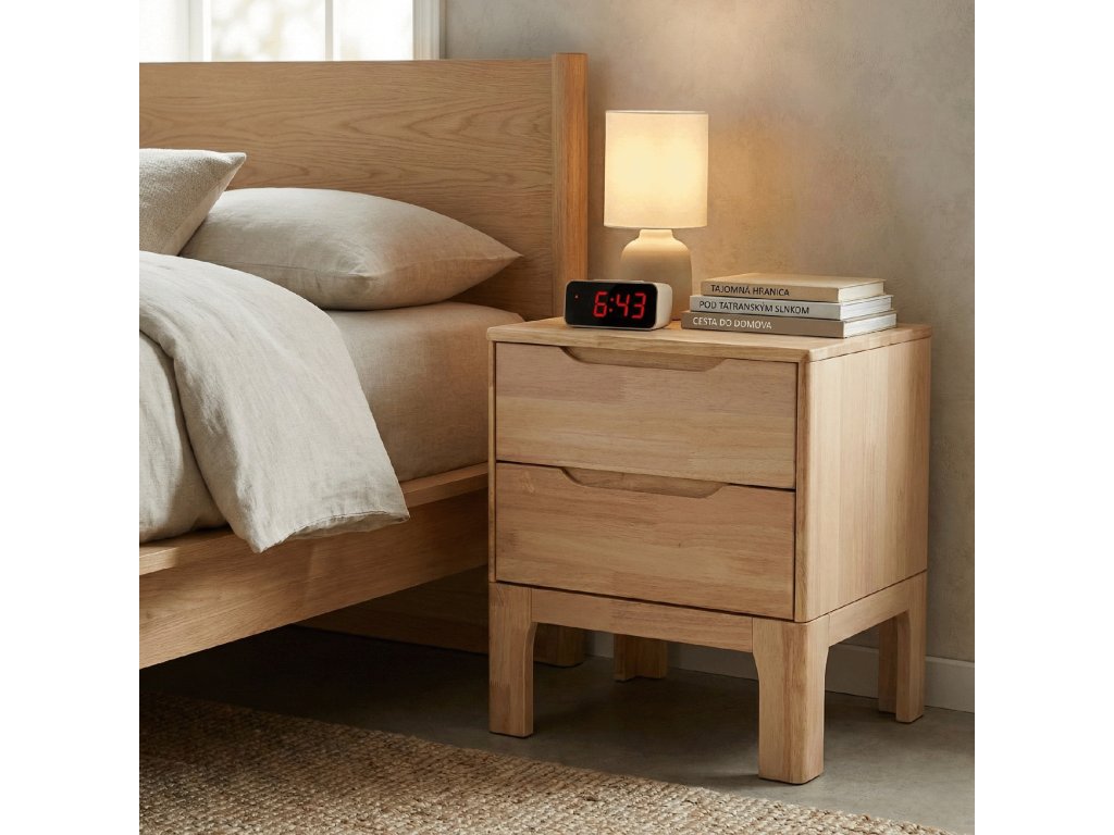 Noční stolek FERB z kaučukového a borového dřeva spojuje přírodní vzhled s funkčností. Nabízí 2 zásuvky, stabilní kaučukové nožičky a čistý design.- Rozměry: 40 × 40 × 48,5 cm
