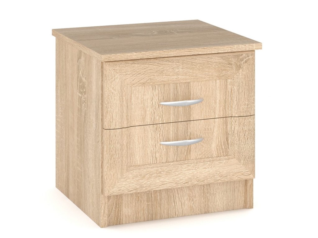 Noční stolky sada 2 ks z ložnicové řady. Jemné orámování na čele nábytku dodá Vašemu interiéru eleganci. Noční stolky jsou vyrobeny z kvalitní LTD desky s MDF prvky v barvě dub sonoma. Nabídka komponentů této sektorové řady umožňuje sestavit si nábytek do ložnice nebo studentského pokoje dle vlastních představ. Dodáváme v demontovaném stavu.Doplňkové parametry