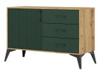 Stylová komoda BARBUS 3D4S v provedení dub artisan/černá. Tři dvířka, čtyři zásuvky s tichým dovíráním a moderní lamelový design – ideální řešení pro úložný prostor v moderním...