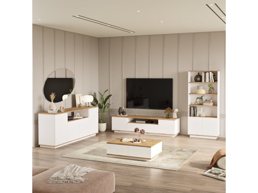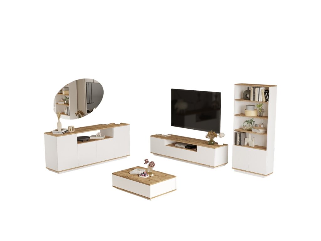Kompletní obývací sestava s TV stolkem, komodou a knihovnou