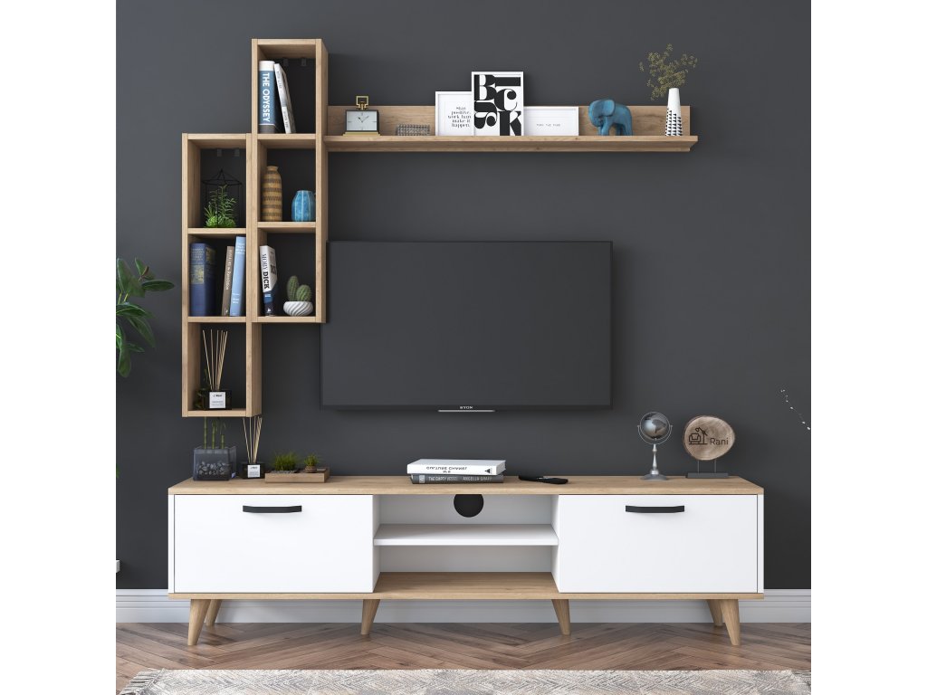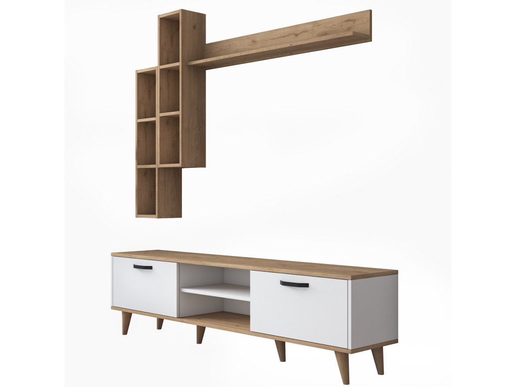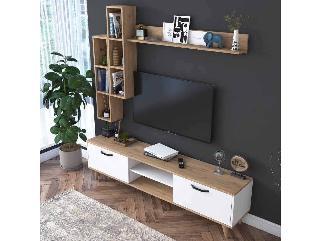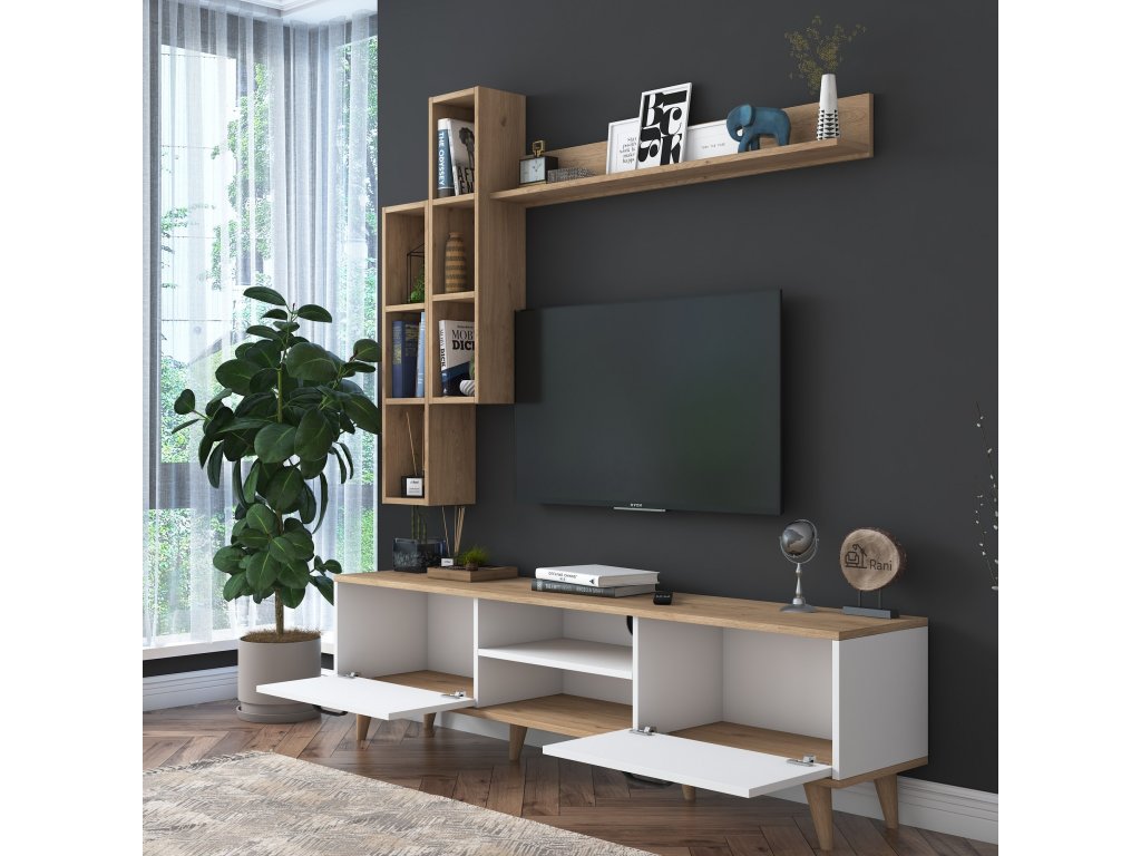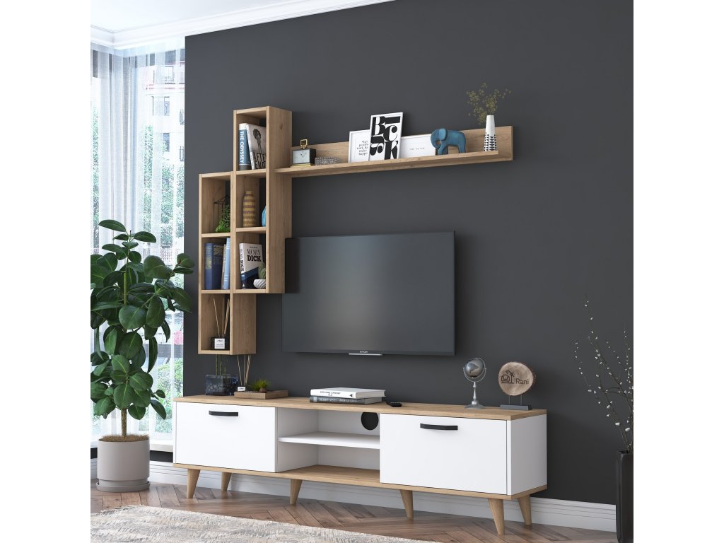 Obývací stěna ALTAMURA kombinuje moderní design s praktickým uspořádáním prostoru. Ideální pro TV, dekorace i každodenní potřeby.