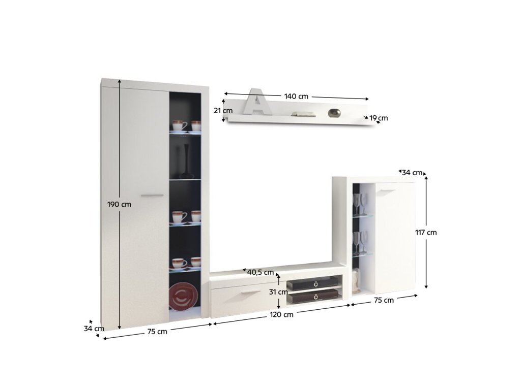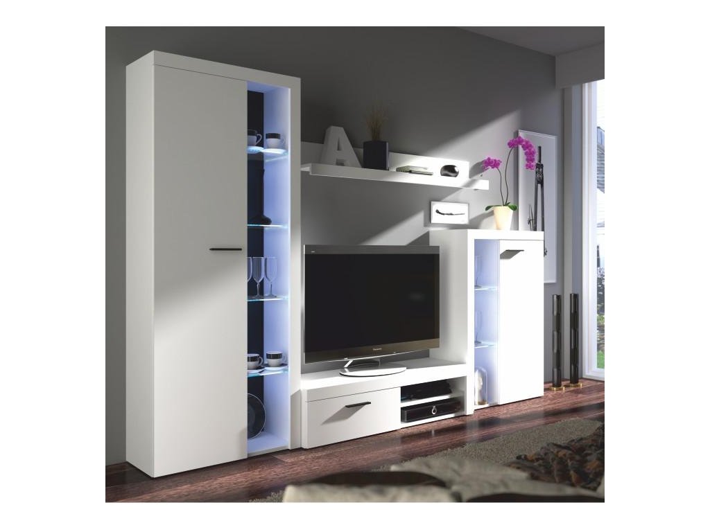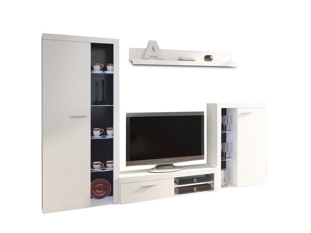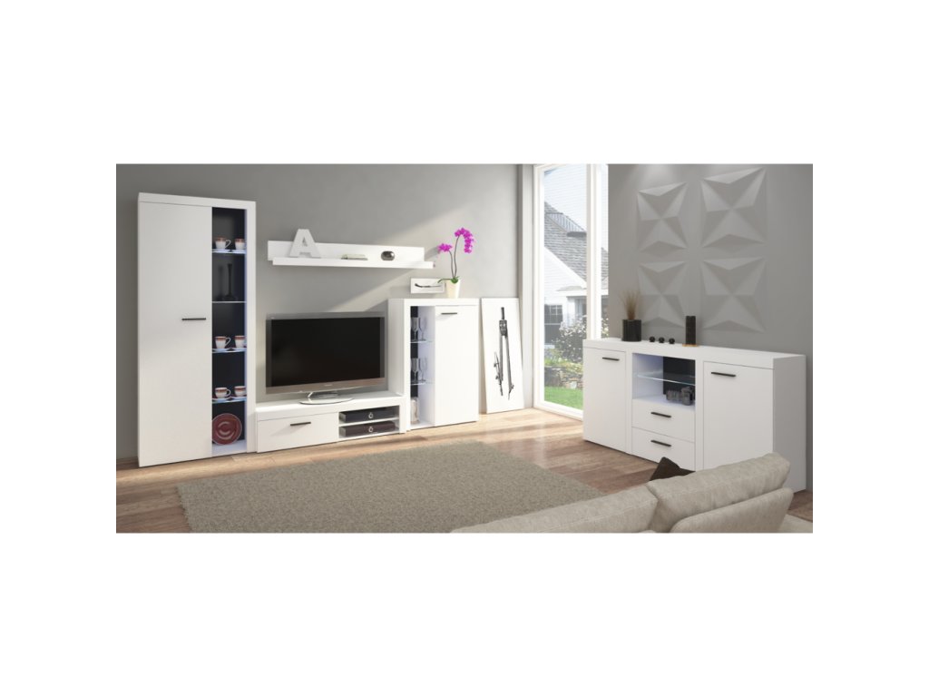 Obývací stěna ROCHESTER - 2 vitríny, RTV stolek, nástěnná policeBarva: bílá