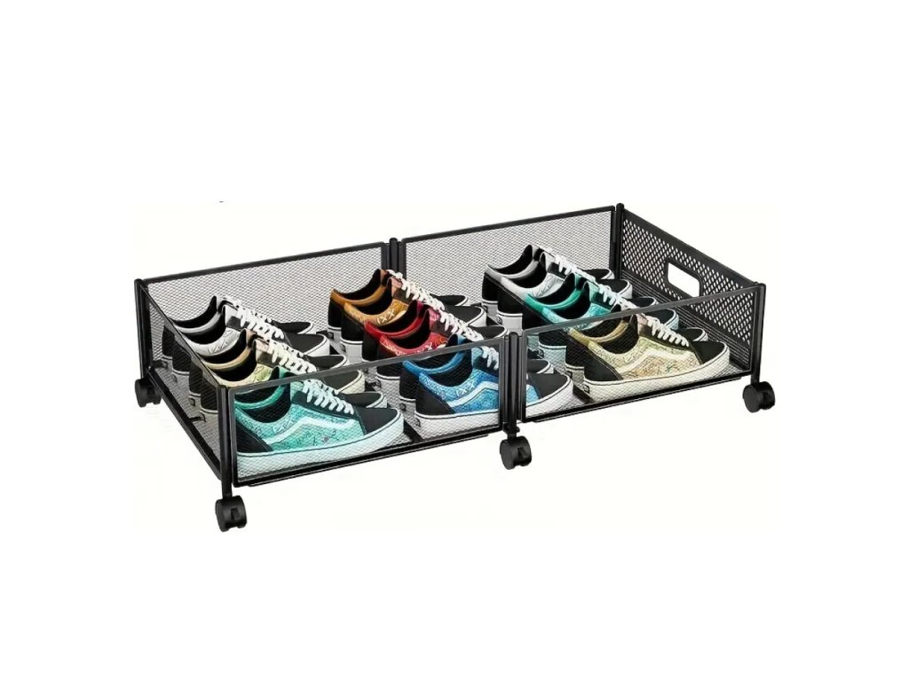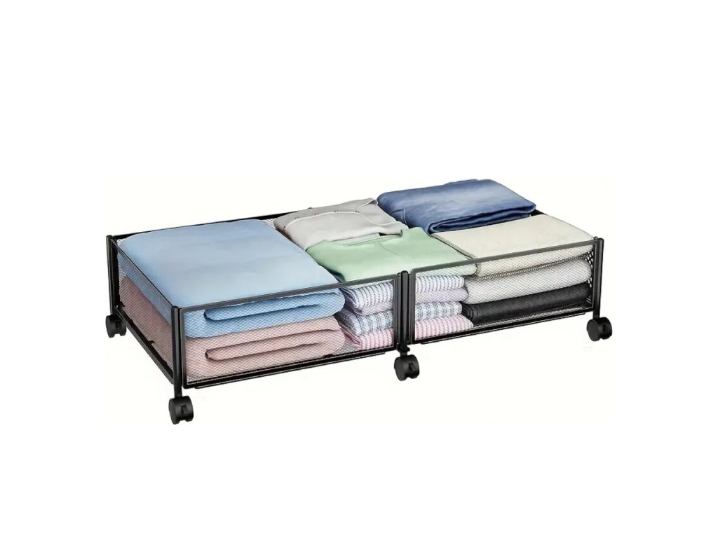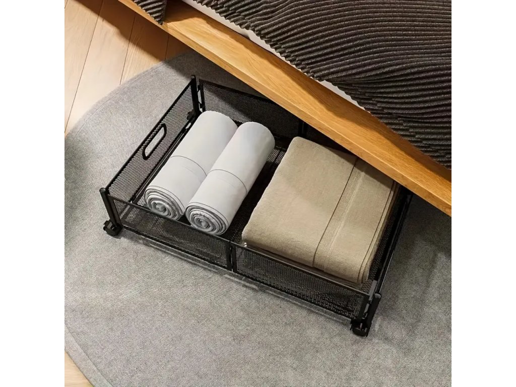 Elegantní černý kovový organizér TOMKO TYP 1 vám pomůže efektivně využít prostor pod postelí. Díky kolečkům s brzdou je manipulace snadná a bezpečná.✔ Skládací konstrukce, rozměry 60×40×16 cm