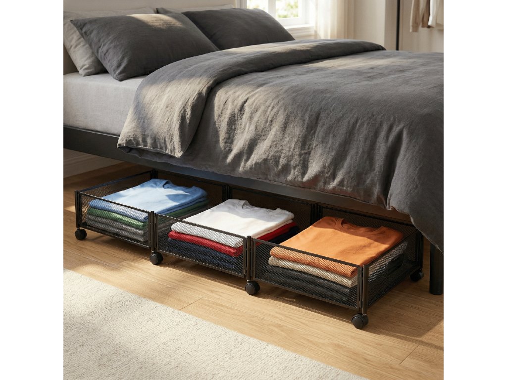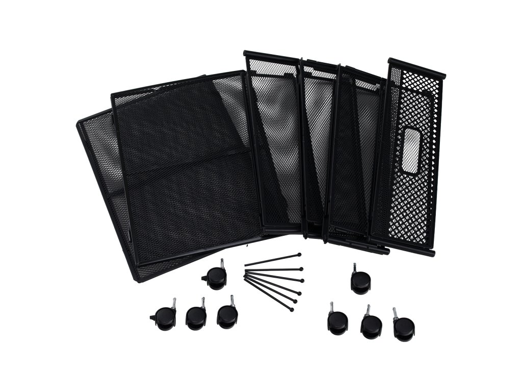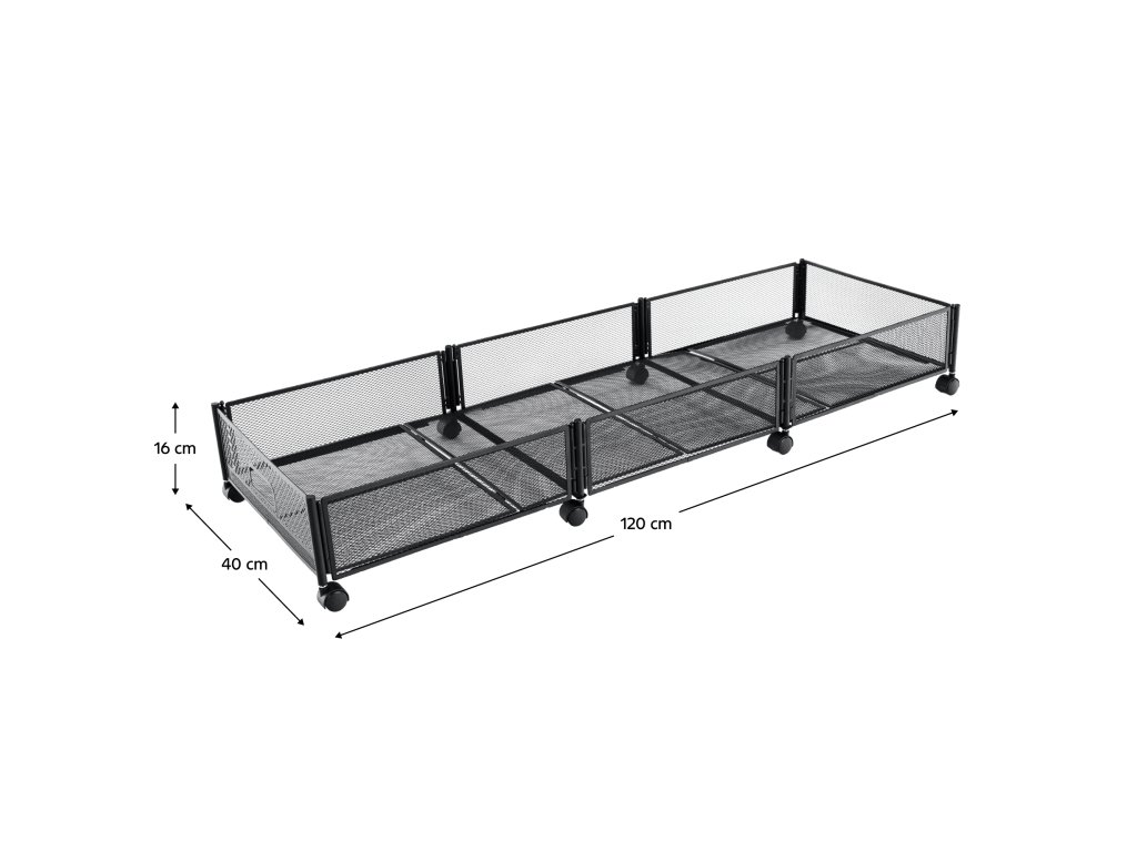 Kovový organizér TOMKO TYP 2 v černé barvě nabízí velkorysý prostor a pohodlnou manipulaci. Ideální pro uložení oblečení, obuvi či hraček, a to s perfektní cirkulací vzduchu.✔ Rozměry 120×40×16 cm, skládací konstrukce