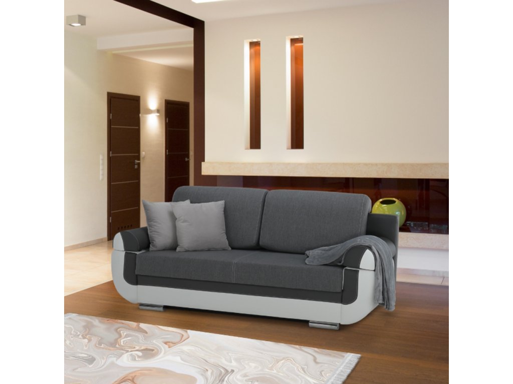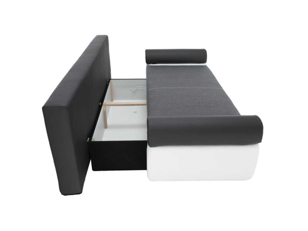 Rozkládací pohovka s úložným prostorem, provedení: ekokůže bílá + šedá / látka Hugo šedá 11.Oděruodolnost textilie podle testu Martindale: 80 000 oděrek