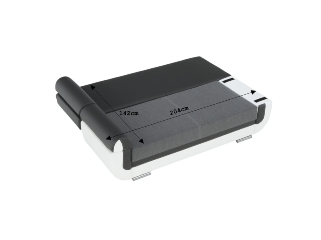 Má kvalitní benoelové sezení. Rozměry ŠxVxH: 204x89x90 cm, plocha na spaní: ŠxD: 142x204 cm. Výška spodního prostoru od podlahy: 5 cm
