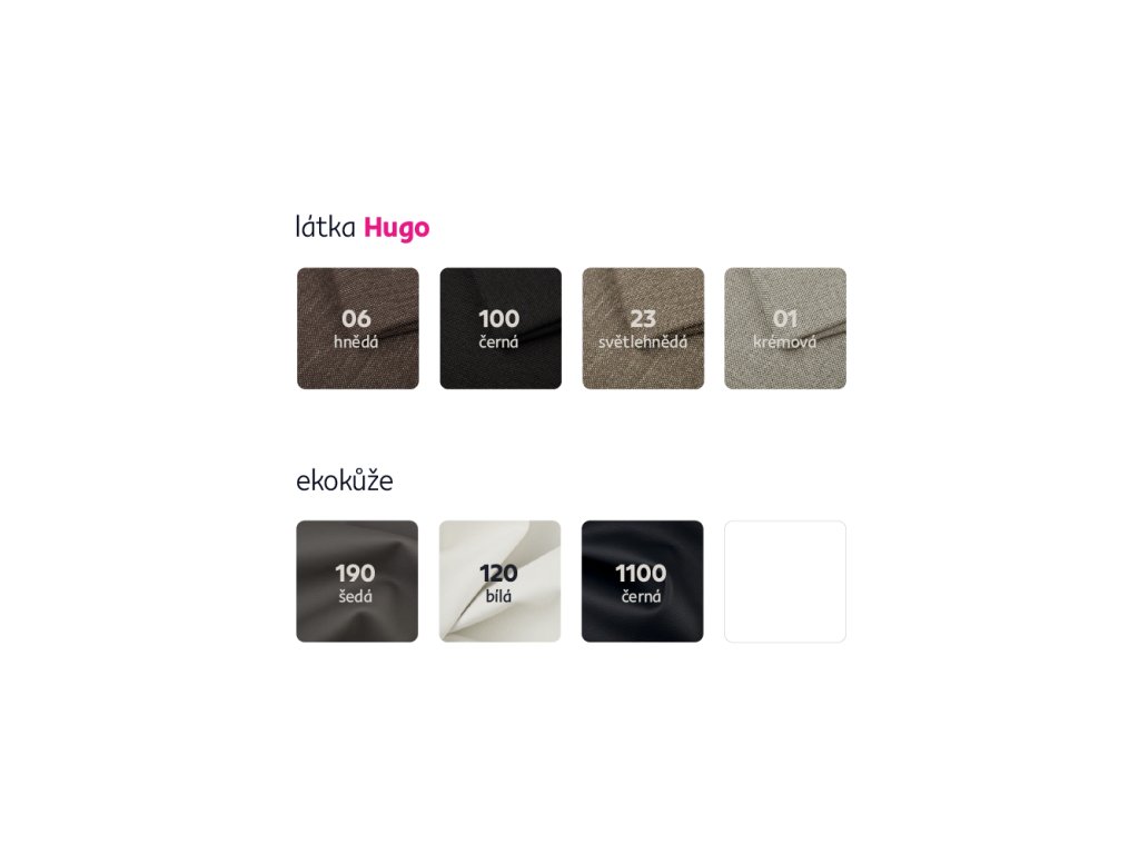 Možnost objednat ve 4 provedeních látky Hugo v kombinaci s ekokůží ve 3 barevných provedeních v ceně 12.690 Kč. Při individuální objednávce je třeba zaplatit 10% zálohu z dané částky. Po uhrazení zálohy bude Vaša objednávka zadána do výroby. Doba dodání 8-10 týdnů.