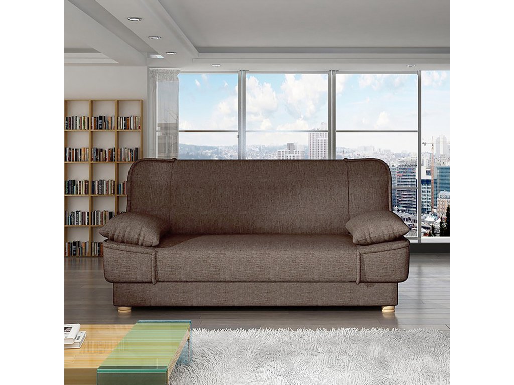 textilní potah, barevné provedení hnědá, jádro z vlnité pružiny, výška sedu 40 cm, hloubka sedu 55 cm, rozměr rozložené 190 × 120 cm, rozkládací s úložným prostorem, rozkládání KLIK-KLAK (postup uveden v návodu k montáži) po složení do polohy k sedu upravte krycí látku v zadní části tak, aby zakryla rozkládací mechanizmusDoplňkové parametry