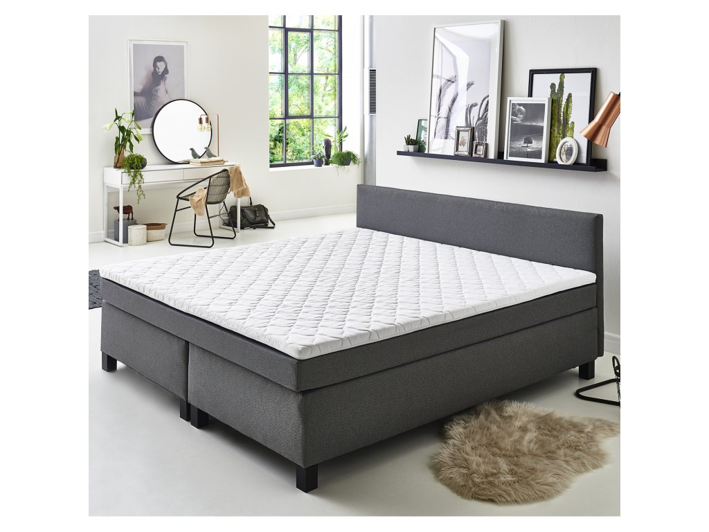 - bílá krycí matrace s komfortním pěnovým jádrem o výšce 4 cm a s prošívaným potahem ze 100% polyesteru