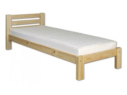 Jednolůžko z masivní borovice v lakovaném provedení s roštem. Rozměr pro matraci 90 × 200 cm. Matrace není v ceně.