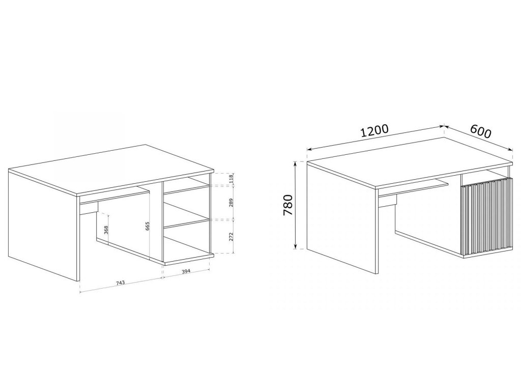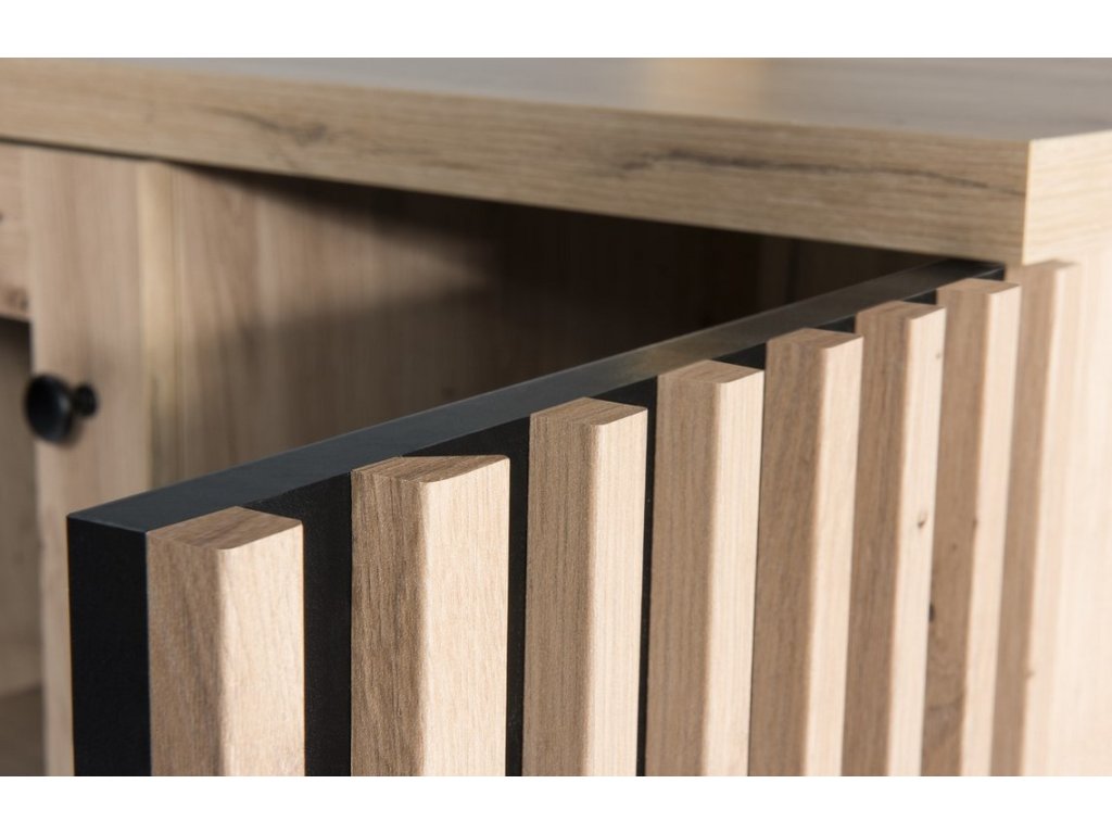 Pracovní stůl BARBUS spojuje styl a praktičnost. Lamelový detail dvířek a výsuvná deska na klávesnici zaručí pohodlí i originální vzhled.✔ Dekor dub artisan/černá mat