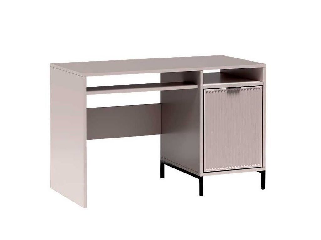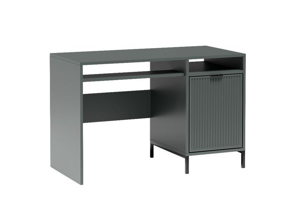 Moderní pracovní stůl z kolekce ODEON v barvě indigo nabízí praktické dvířka s tichým zavíráním, úložný prostor a designové frézování.- Materiál: 18 mm lamino + MDF