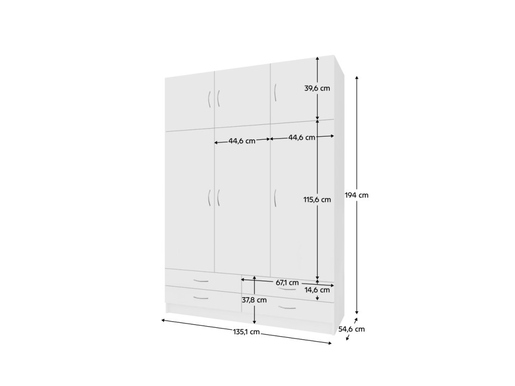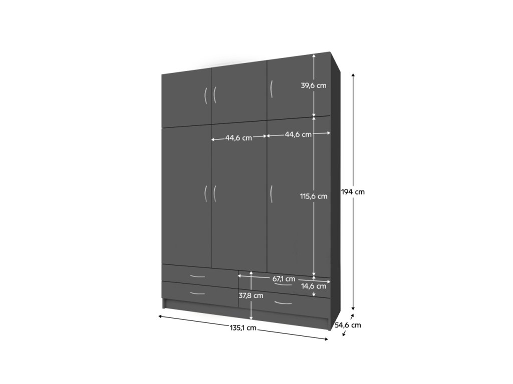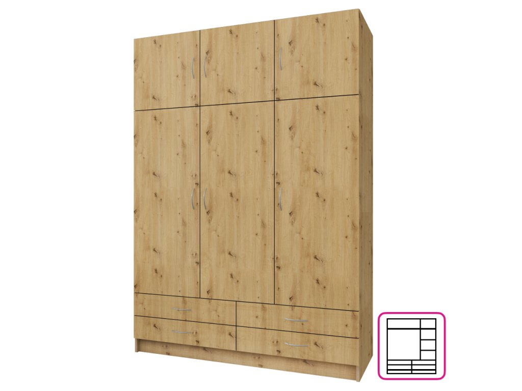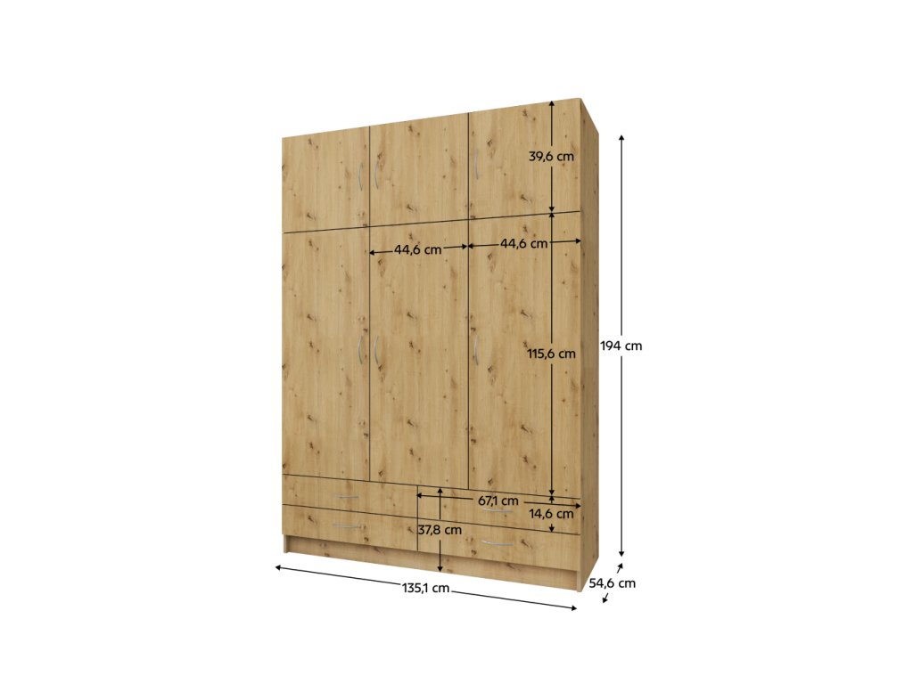 Šatní skříň GERI NEW dub artisan nabízí praktický a elegantní úložný prostor:✔ Laminovaná DTD, rozměry 135,1x54,6x194 cm
