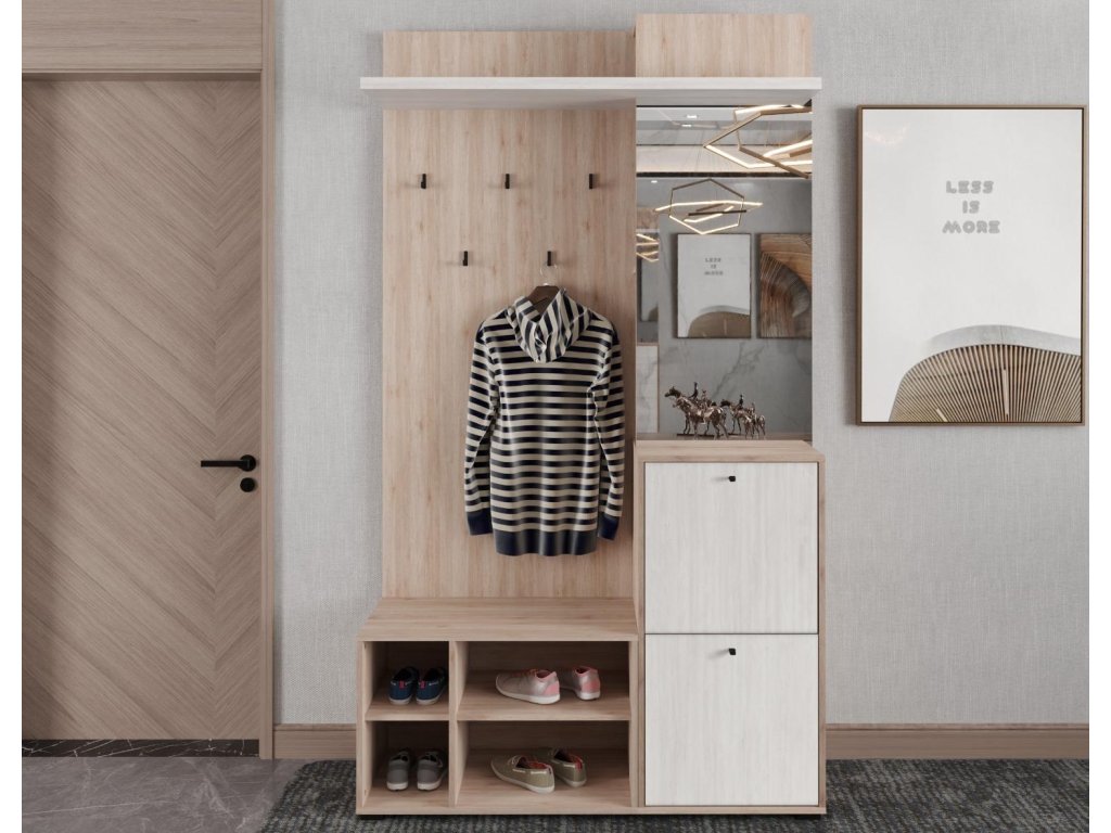 Tato předsíňová sestava poskytuje praktické a stylové řešení pro vaši předsíň. Barevné provedeníje dub San Remo/borovice Canyon. Skládá se - věšáky, odkládací police, skříňka na boty, zrcadlo, otevřené police. Materiálje kombinací kvalitní LTD 22 a 16 mm. Je navržena tak, aby přinesla pořádek a styl do vašeho vstupního prostoru. Dodáváme v demontontovaném stavu.Doplňkové parametry