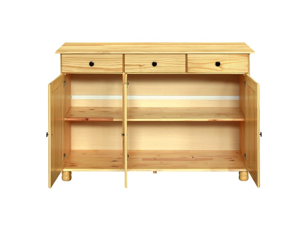 materiál masiv borovice, lakované provedení, 3 dveře, 3 zásuvky s kovovými pojezdy, 1 policeDoplňkové parametry