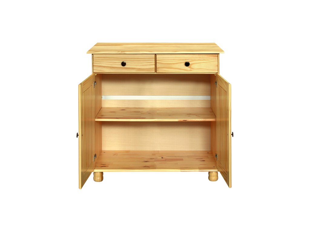 materiál masiv borovice, lakované provedení, 2 dveře, 2 zásuvky s kovovými pojezdy, 1 policeDoplňkové parametry
