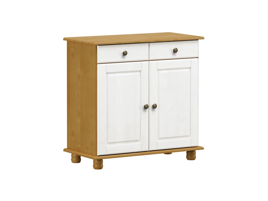 materiál masiv borovice, barevné provedení dub / bílý lak, 2 dveře, 2 zásuvky s kovovými pojezdy, 1 policeDoplňkové parametry
