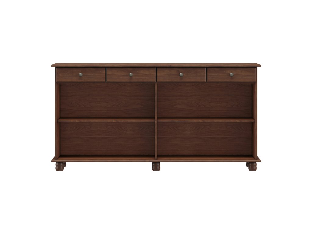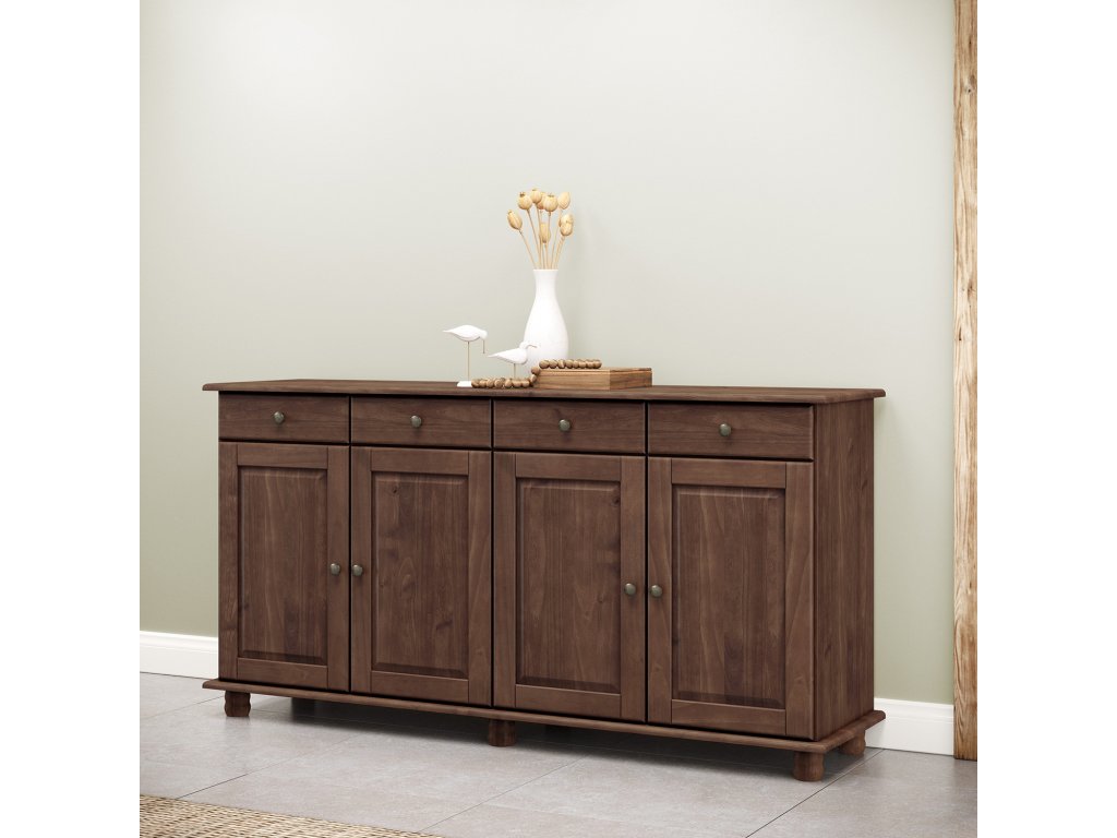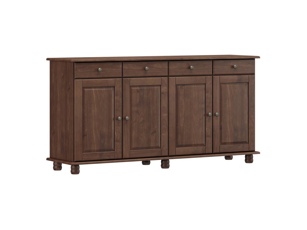 Příborník RUBI 8929W – tmavě hnědáStylový příborník RUBI 8929W z masivní borovice v elegantním tmavě hnědém provedení je ideální volbou do klasicky nebo rustikálně laděných interiérů. Nabízí čtyři zásuvky s kovovými pojezdy, čtyři plné dveře a dvě vnitřní police, což zajišťuje dostatek úložného prostoru pro nádobí, textil i další potřeby. Precizní zpracování a kvalitní materiály garantují dlouhou životnost a spolehlivost.