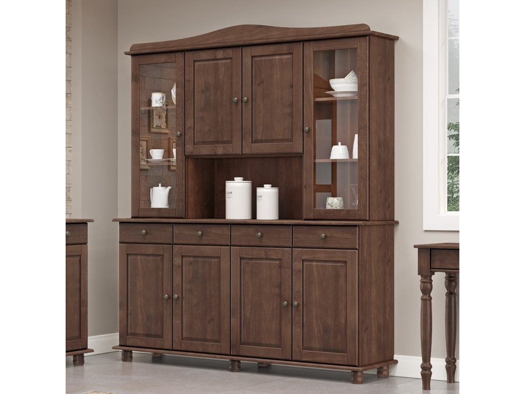 Příborník s nástavcem RUBI 8963W – tmavě hnědáRobustní a elegantní příborník RUBI 8963W v tmavě hnědém provedení z masivní borovice přináší do interiéru styl i funkčnost. Dolní část je vybavena čtyřmi plnými dvířky a čtyřmi zásuvkami s kvalitními kovovými pojezdy, ideálními pro uložení kuchyňského náčiní či textilu. Horní nástavec pak nabízí dvě prosklená a dvě plná dvířka – perfektní pro vystavení nádobí i skrytí dalších věcí. Pevné zpracování zajišťuje dlouhou životnost a odolnost.